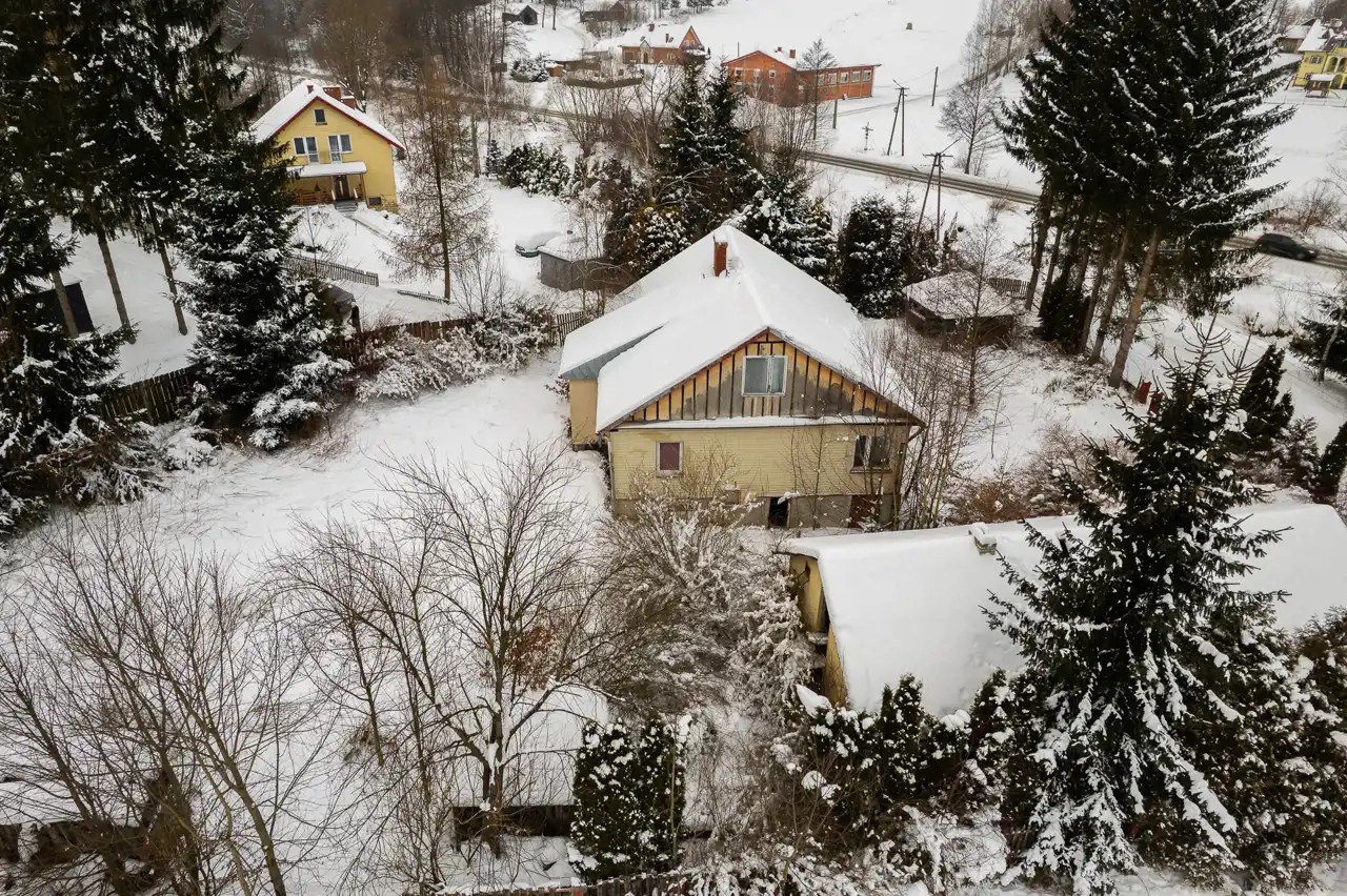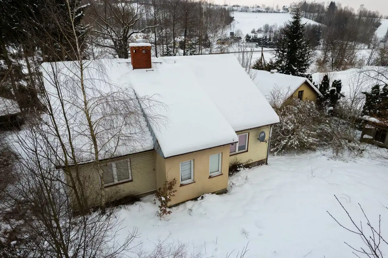 Budynek mieszkalny został w przeszłości przebudowany (dobudowana weranda, adaptacja poddasza). Obecnie obiekt jest niezamieszkały i wymaga generalnego remontu, co daje przyszłemu właścicielowi możliwość aranżacji według własnych potrzeb. Budynek gospodarczy również nie jest użytkowany i może pełnić funkcję zaplecza, warsztatu lub zostać zaadaptowany na inne cele.