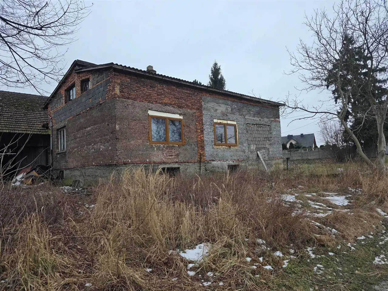 Budynek o powierzchni użytkowej około 100m2 murowany z cegły/pustaka w całości podpiwniczony.