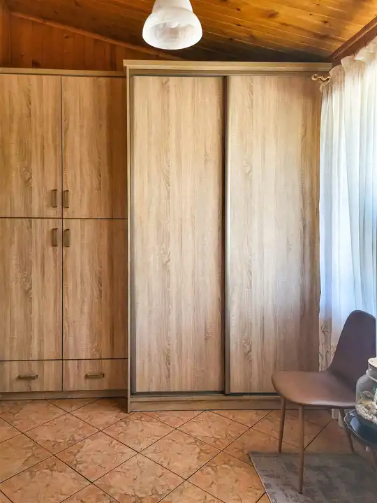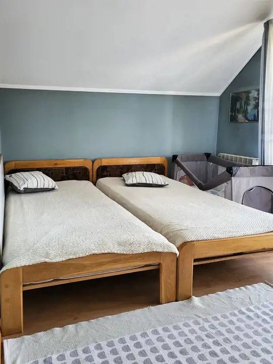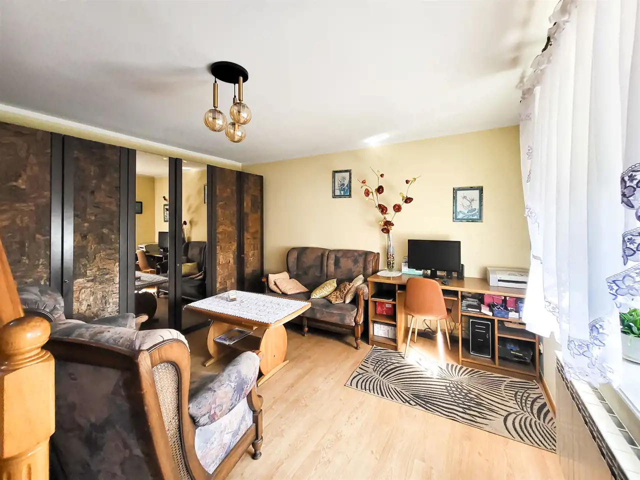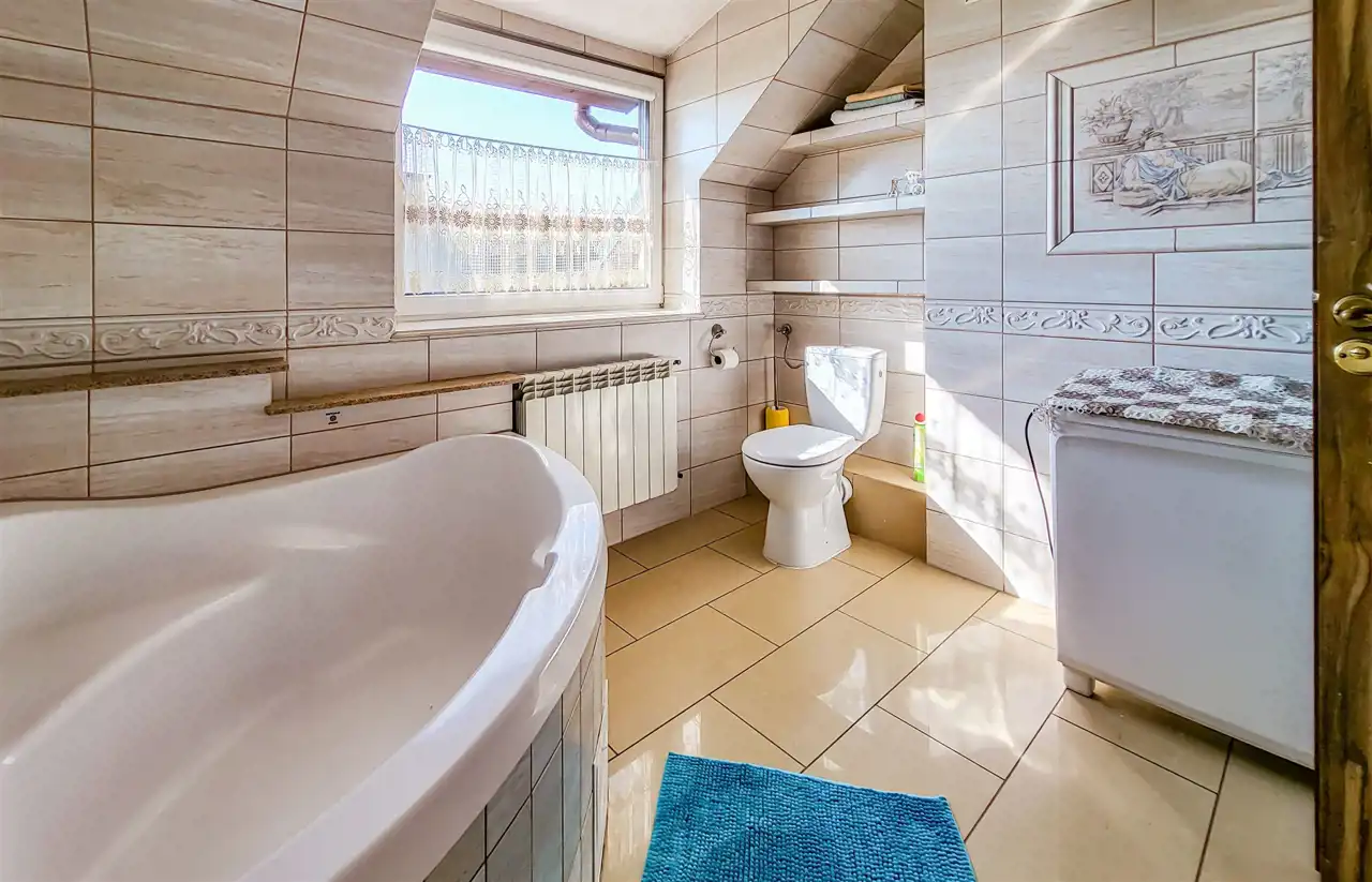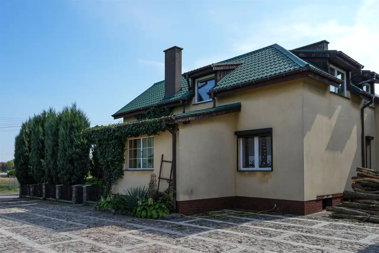 Budynek powstał w 2000 roku, wybudowany z pustaka oraz cegły, ocieplony styropianem i otynkowany. Dach pokryty jest blachą. Stolarka okienna PCV. Dom posiada dwie kondygnacje. Na parterze znajduje się przedpokój, pokój, korytarz, kuchnia, salon, oraz łazienka z prysznicem, umywalką i WC. Na piętrze znajduje się korytarz, trzy sypialnie i łazienka z narożną wanną, umywalką i WC. Podłogi w pokojach pokryte są panelami, w łazienkach, w korytarzu na parterze i w kuchni glazurą. Rozkładowy charakter nieruchomości zapewnia wygodę i komfort wszystkim domownikom oraz odpowiednie nasłonecznienie wnętrza o różnych porach dnia. Dom ogrzewany jest ekogroszkiem, lecz dostępne jest również alternatywne, elektryczne źródło ciepła. Budynek jest częściowo podpiwniczony. Powierzchnia piwnicy pod budynkiem to ok 20m2. Nieruchomość oferowana jest wraz z całym wyposażeniem widocznym w prezentacji.