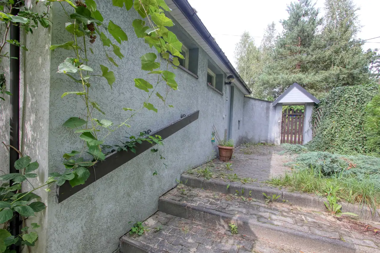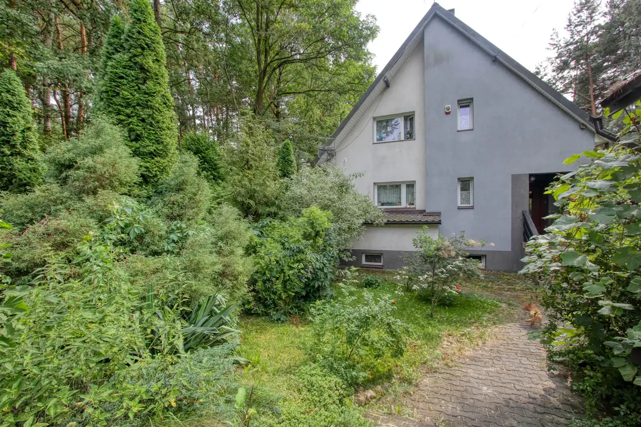 Dojazd do posesji odbywa się asfaltową drogą, co zapewnia wygodę i komfort codziennego użytkowania. Sąsiedztwo stanowią domy jednorodzinne na dużych działkach rezydencjonalnych, co zapewnia spokój i intymność, a otoczenie nadaje leśny charakter tej nieruchomości.