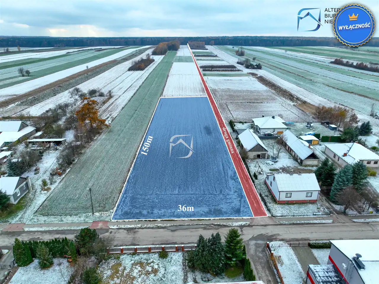 Działka o powierzchni całkowitej 5400mkw i szerokości frontu 36mkw - mieści się tuż przy asfaltowej drodze gminnej co gwarantuje doskonały dojazd. Najbliższe otoczenie nieruchomości stanowią zabudowania jednorodzinne i gospodarstwa rolne ulokowane pośród pól uprawnych.