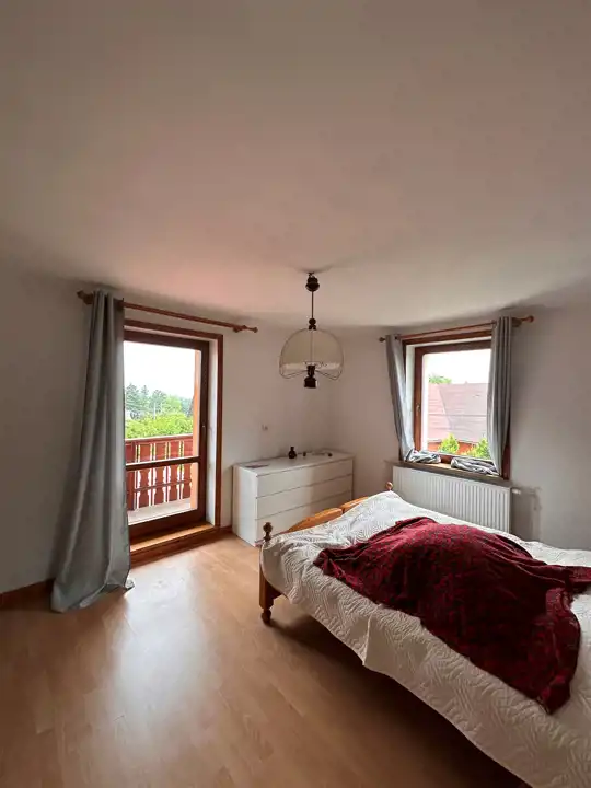 Dom o powierzchni ok. 120 m² składa się z dwóch niezależnych mieszkań (parter i piętro) – idealny dla dwóch rodzin, wynajmu krótkoterminowego (blisko góry!) lub długoterminowego.