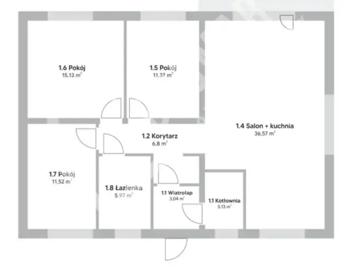 - 3 sypialnie 11,43, 15,21, 11,59 mkw