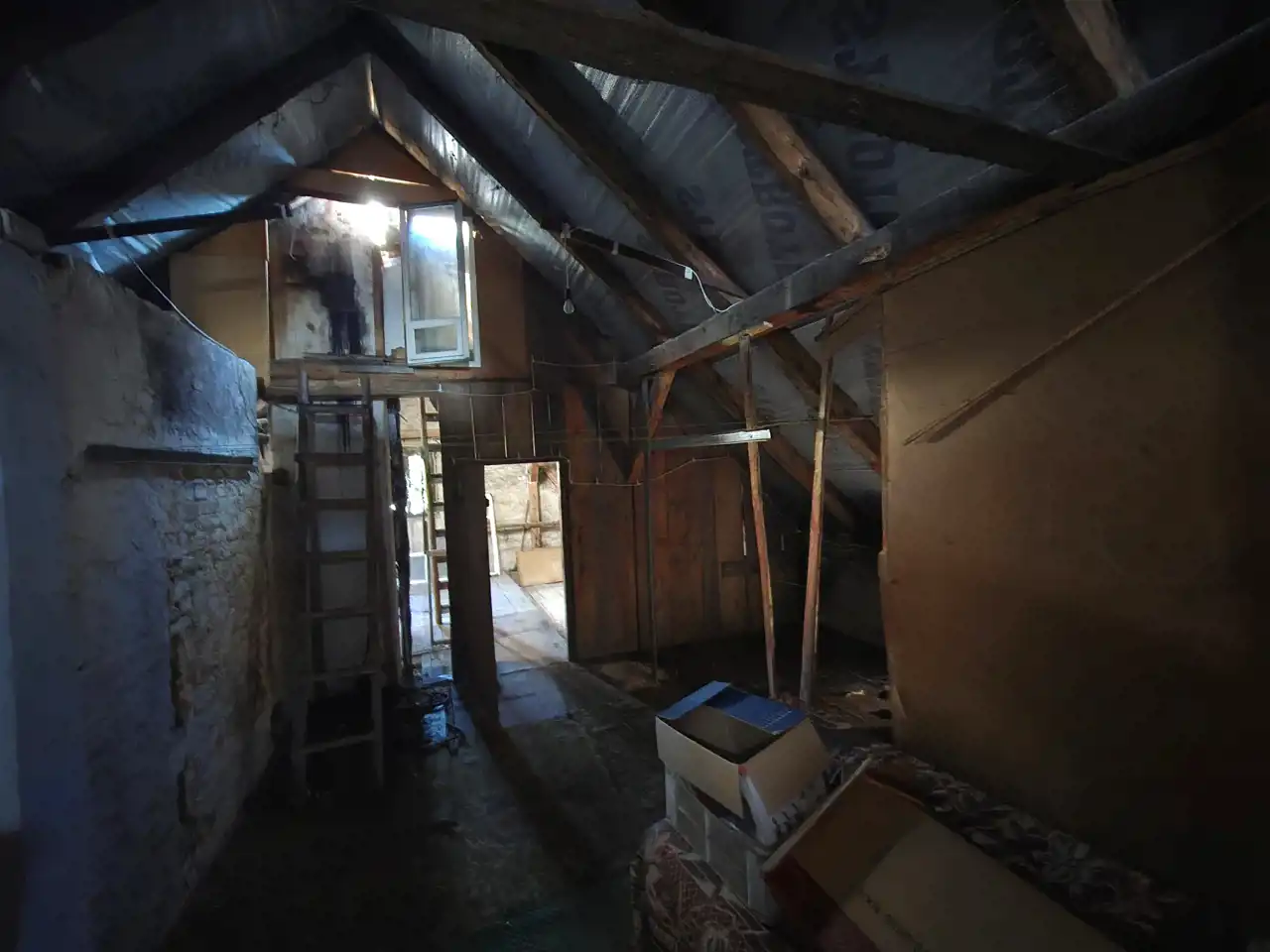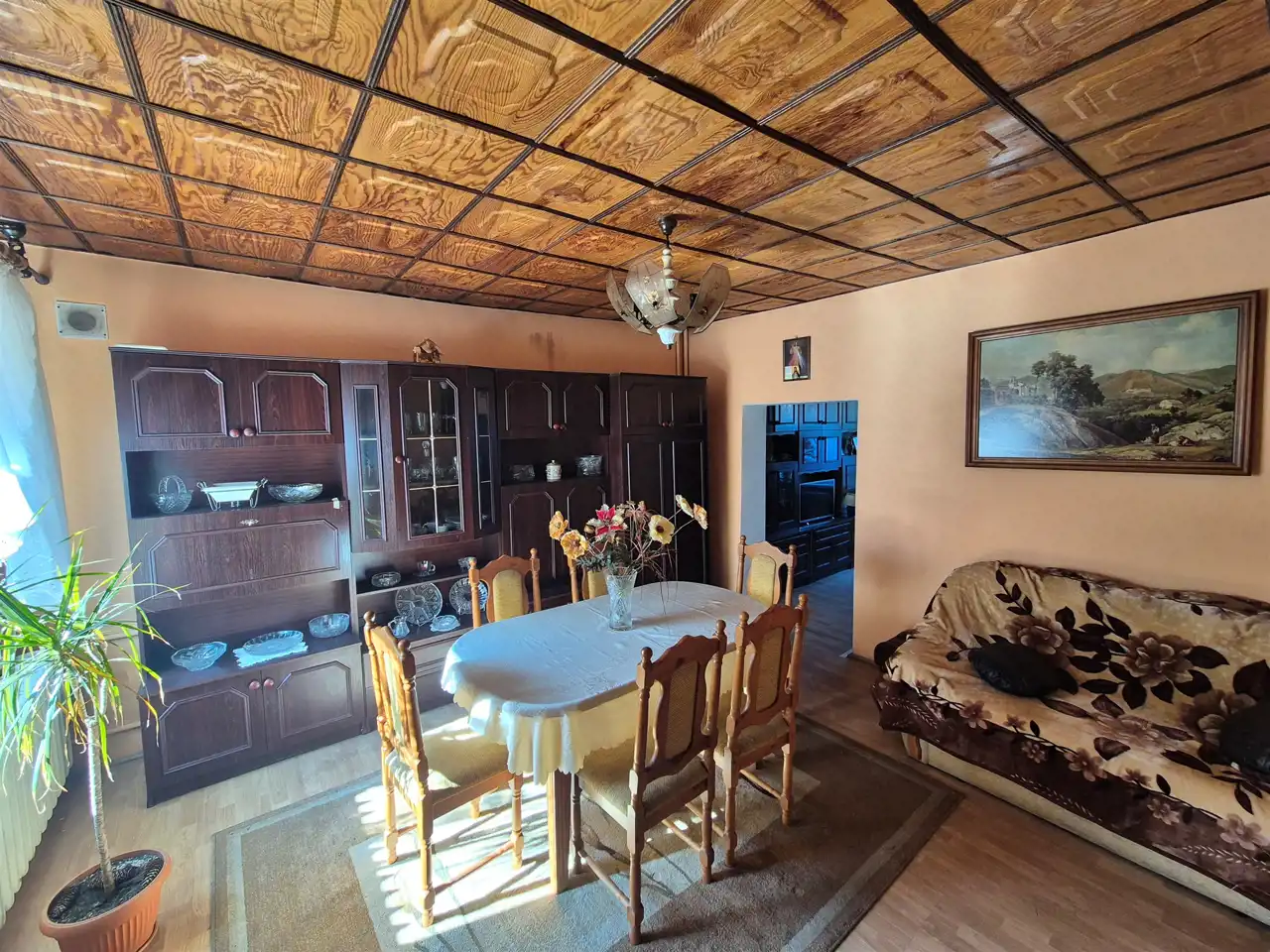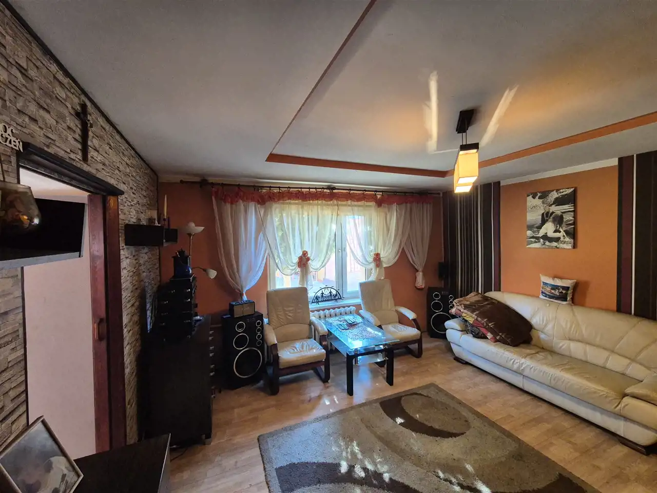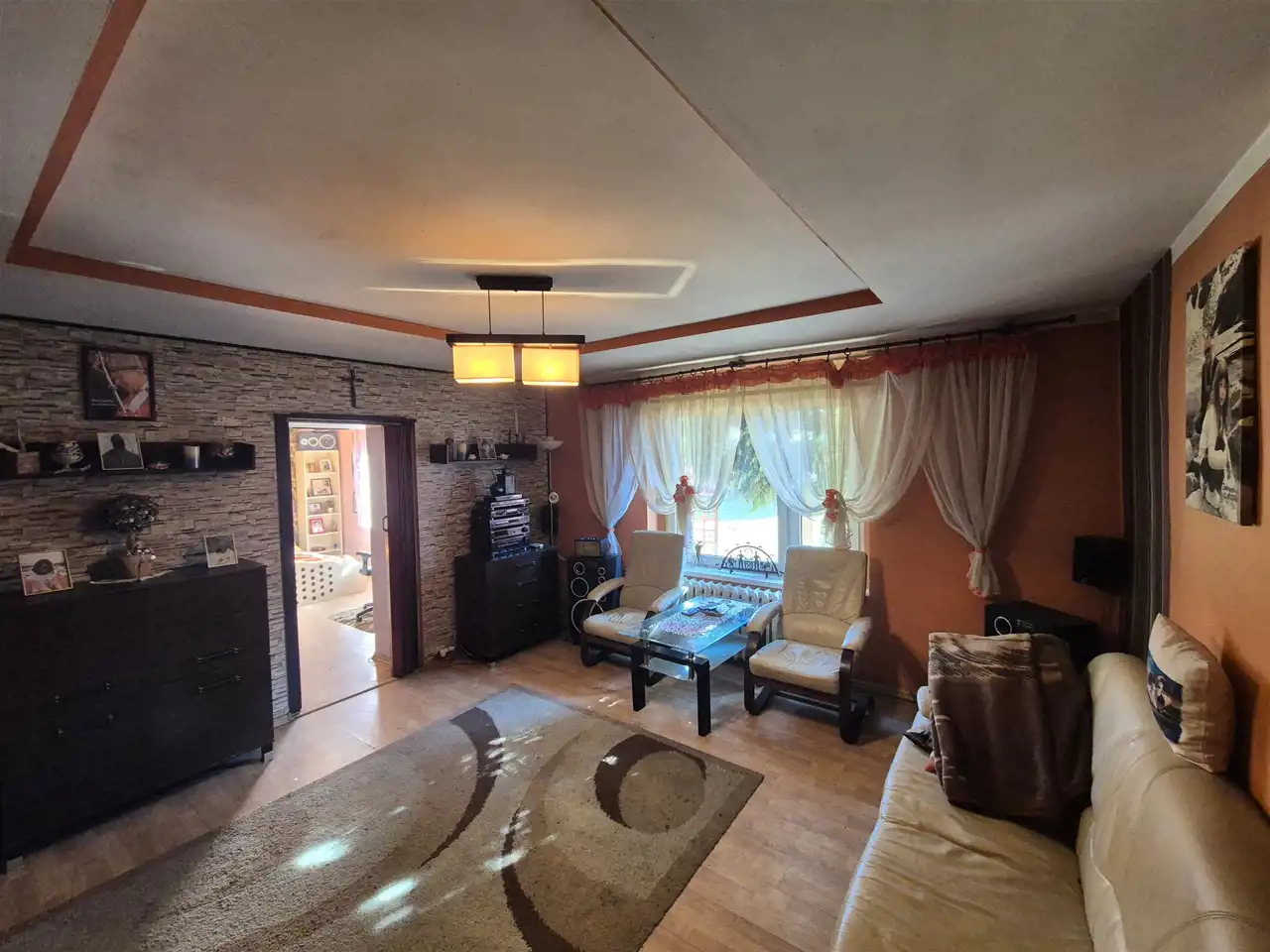 Duży podpiwniczony dom o wymiarach 9m x 17.3m, składa się z siedmiu pokoi, przedpokoju ,łazienki z wc , jasnej kuchni oraz strychu.