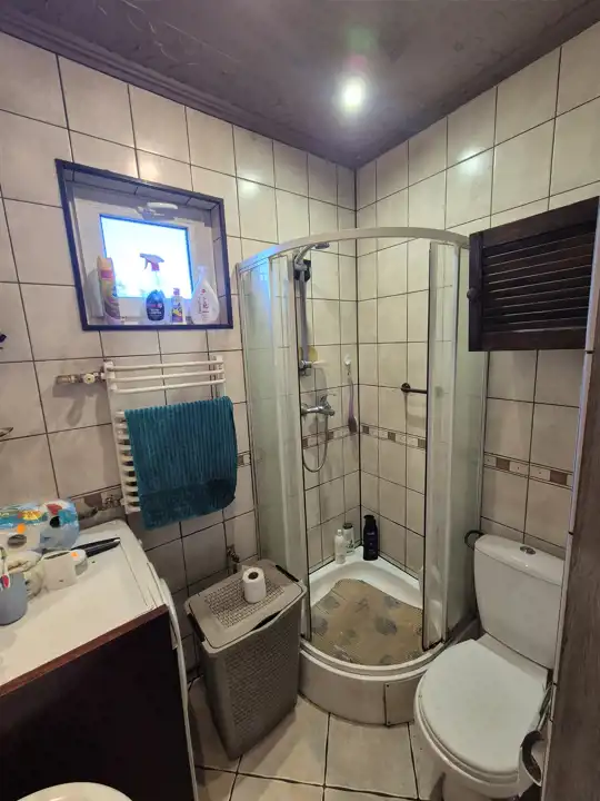 Okna pcv, tynki cementowo wapienne , podłogi pokoi poryte panelami. Podłogi kuchni , łazienki i przedpokoju pokryte płytkami. Ogrzewanie centralne piecem na paliwo stałe. Media : prąd, woda.