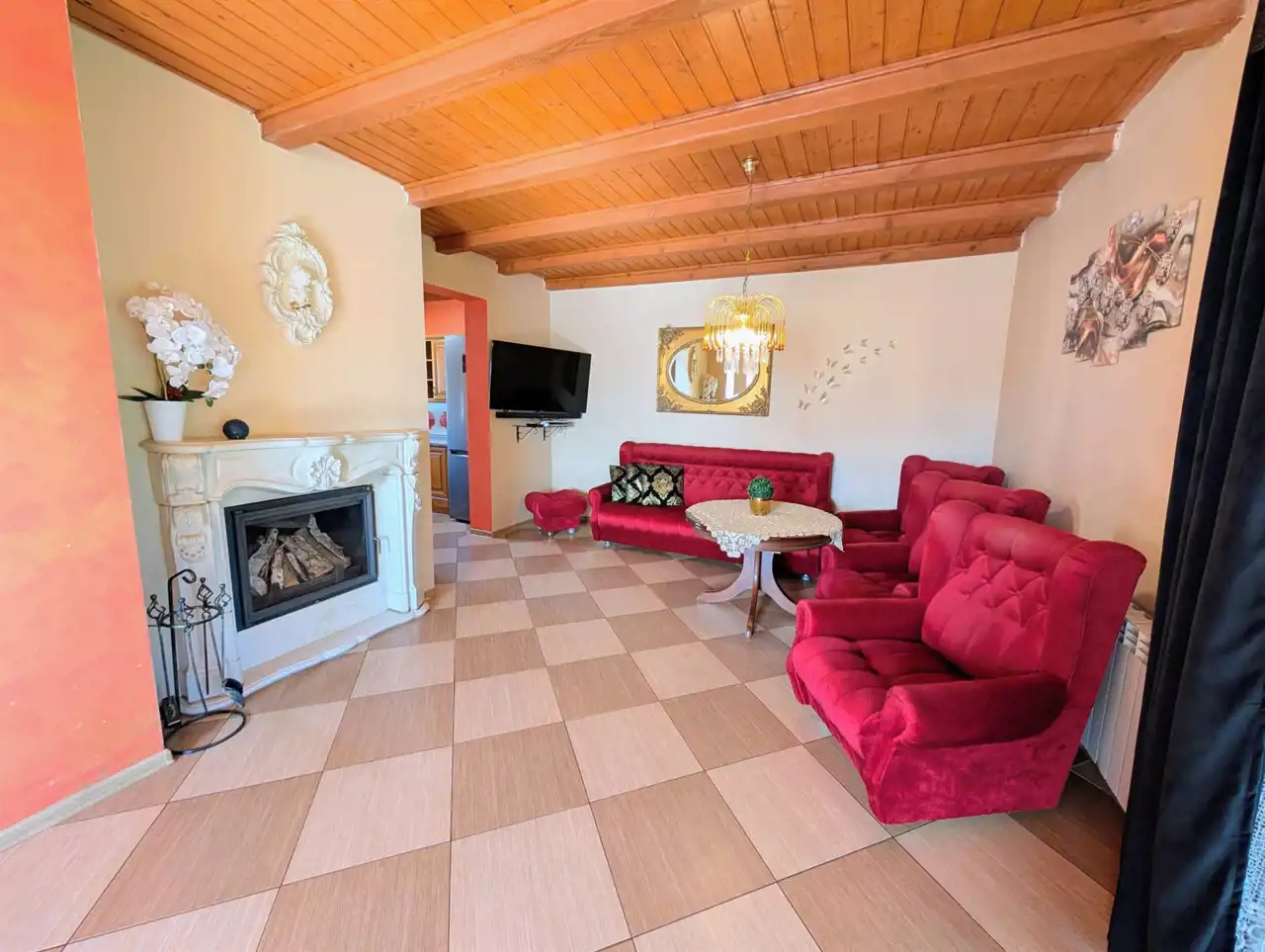 - kominek w salonie,