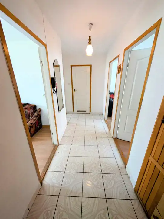 Nieruchomość składa się z przestronnego salonu, 2 sypialni, odrębnej kuchni z piecem CO oraz przedpokoju i łazienki z toaletą. Istnieje możliwość wyburzenia ścianki działowej pomiędzy kuchnią i pokojem, uzyskując przestronną kuchnię z jadalnią.