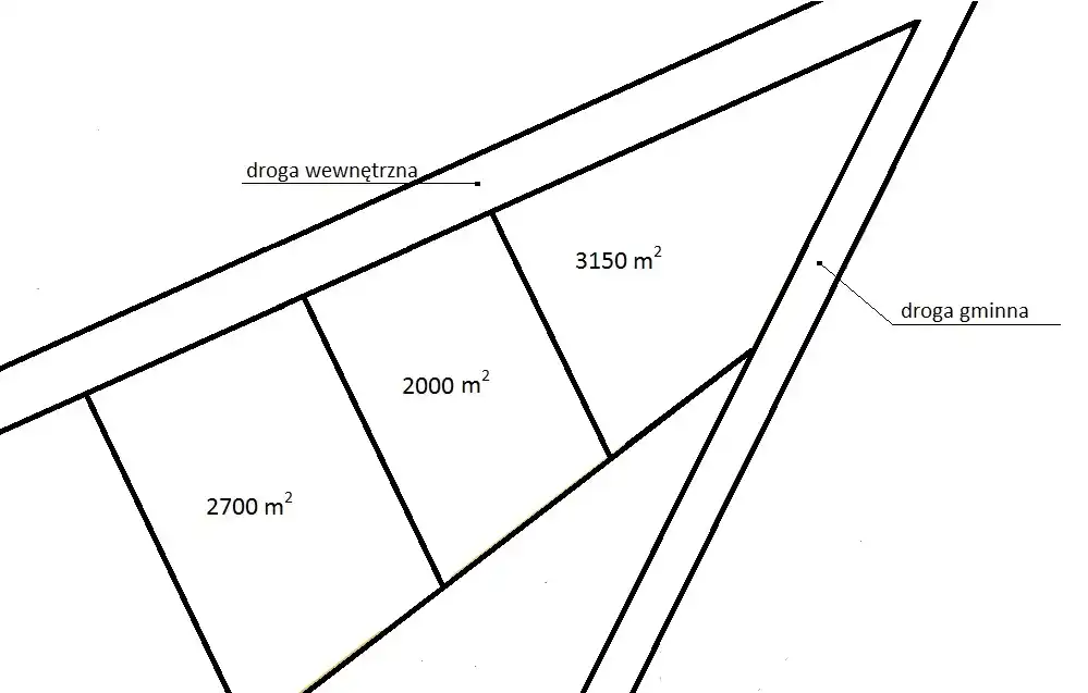 działki do wydzielenia z większej całości. Na rysunku przykładowy podział, który na życzenie Klienta może być skonstruowany inaczej.
