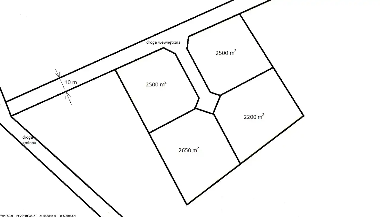cztery działki pokazane przykładowo. Wydzielenie z całości na życzenie Klienta.
