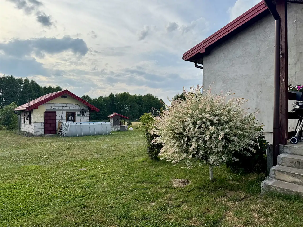 - Dodatkowe zabudowania: Blaszany garaż, budynki gospodarcze, wędzarnia