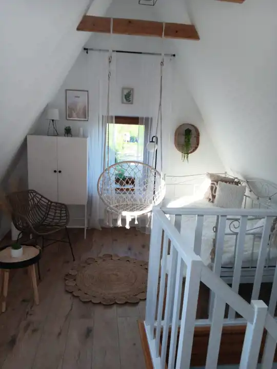 Ostatnia kondygnacja mieszkalna znajduje się na poddaszu i tam również są dwie sypialnie w skosach.