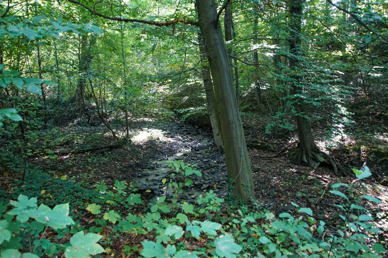 - Działka częściowo zagospodarowana, lekko nachylona, nieregularny