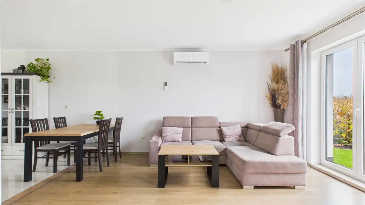 Dom wyposażony jest w klimatyzację. Ogrzewanie zapewnia centralne ogrzewanie elektryczne z zasobnikiem ciepłej wody. Dla komfortu w sezonie zimowym w dolnej łazience znajduje się kominek. Do nieruchomości doprowadzony jest światłowód.
