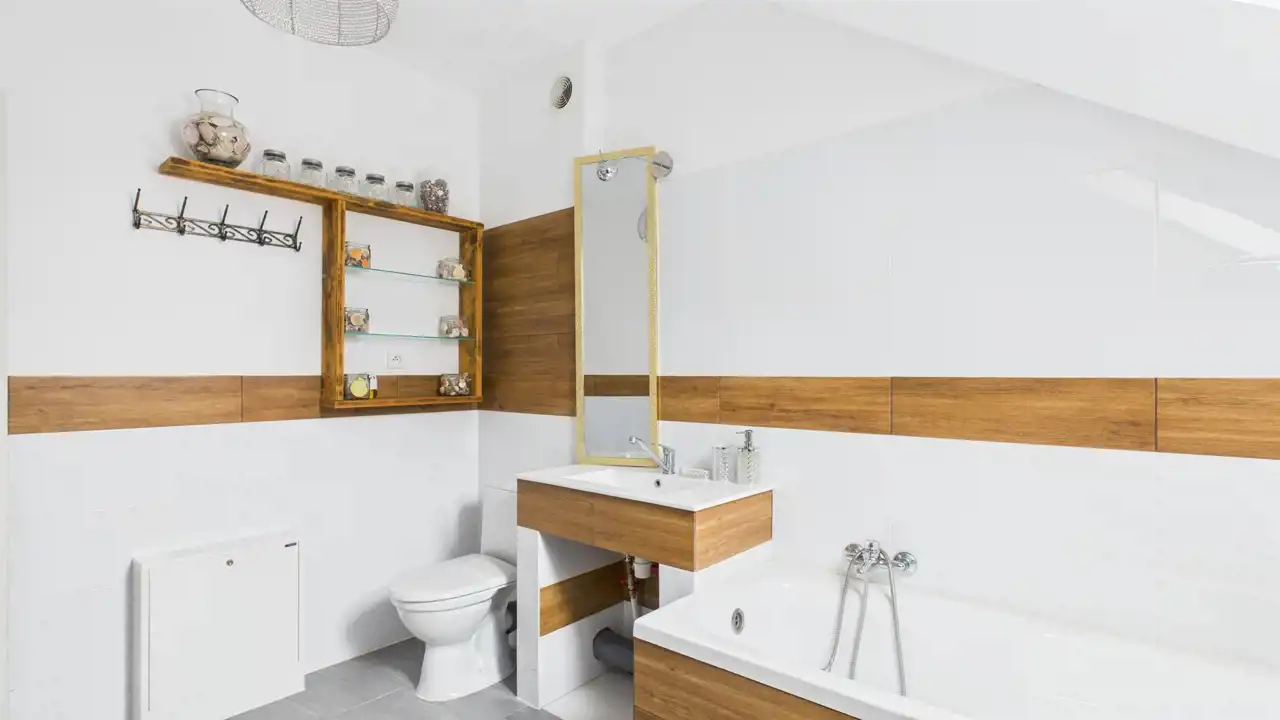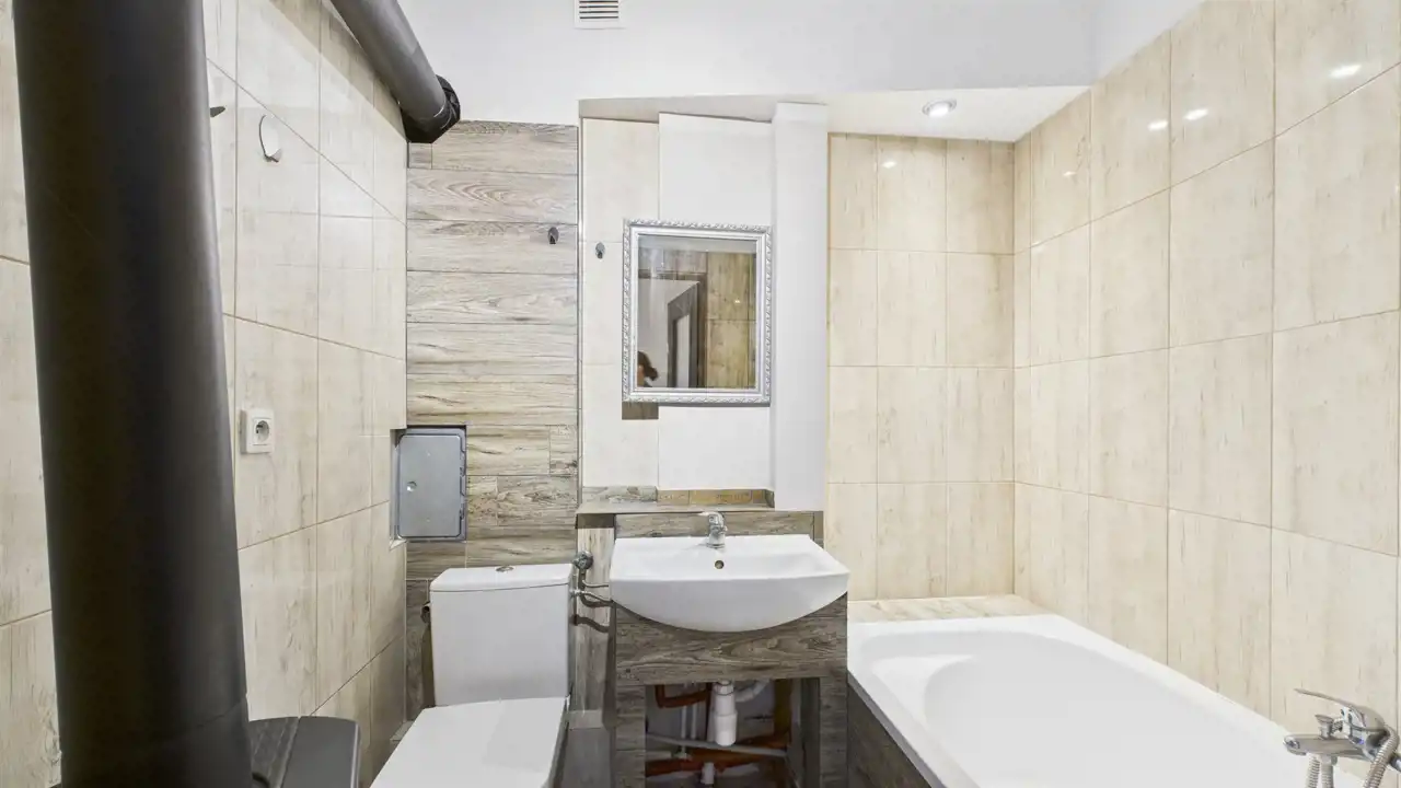 druga łazienka, również wyposażona w wannę.