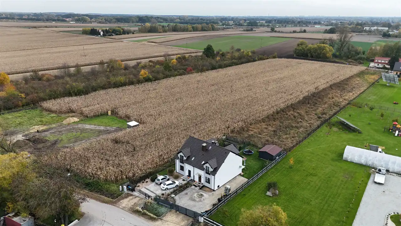 Nieruchomość znajduje się w cichej i spokojnej okolicy, otoczonej zabudową jednorodzinną oraz terenami zielonymi i polami uprawnymi. W bliskim sąsiedztwie znajdują się: