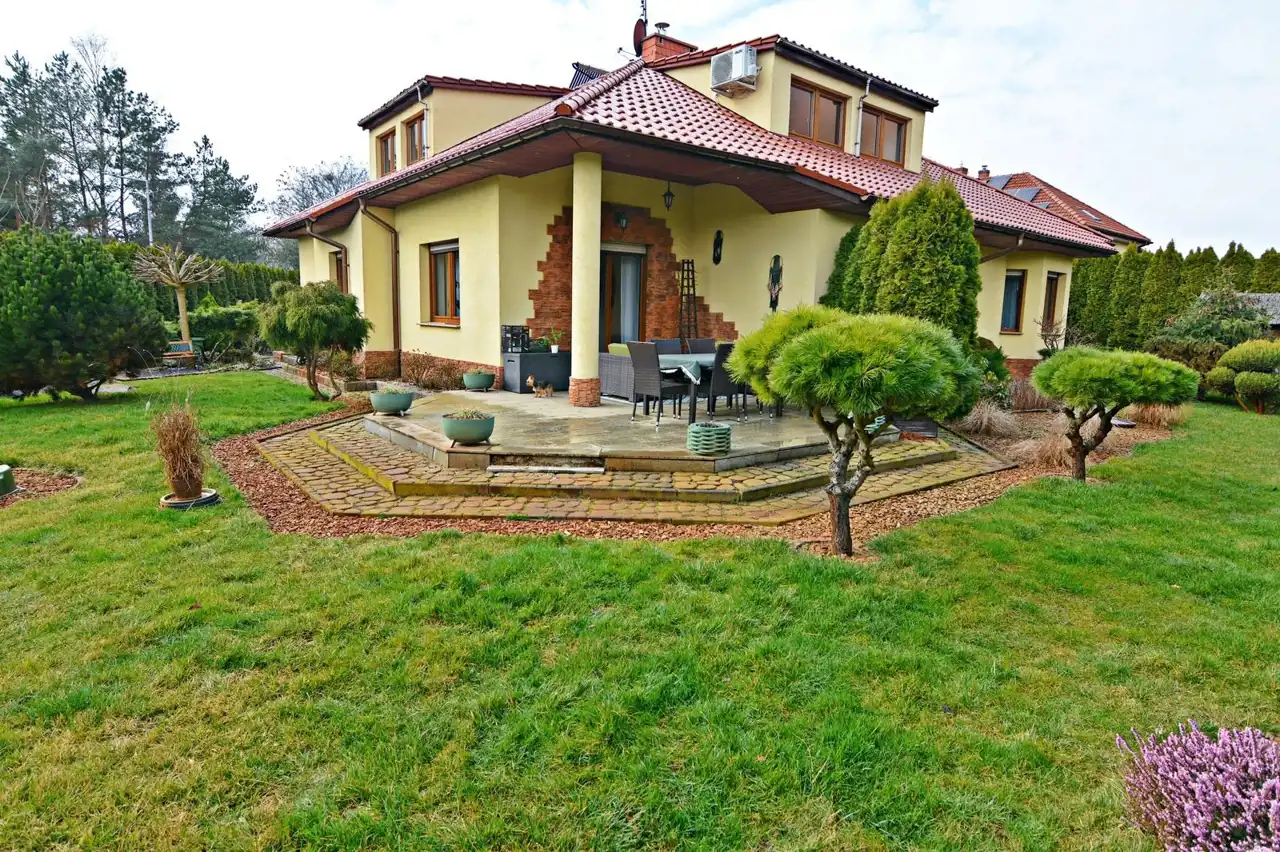 Nowoczesny dwupiętrowy dom o powierzchni 360 m2 posadowiony na dużej zagospodarowanej działce o pow. 1200 m2, wybudowany w 2007 roku.