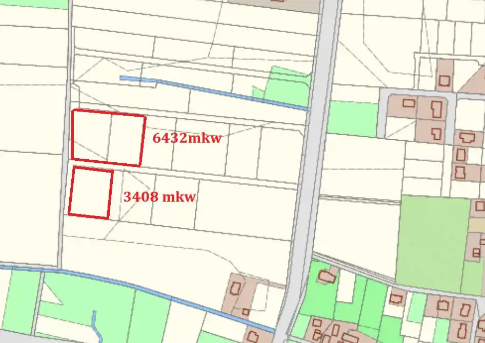 - dwie przylegające do siebie działki o łącznej powierzchni 6432 mkw ( szerokość frontowa 92 m x głębokość 67 mkw )