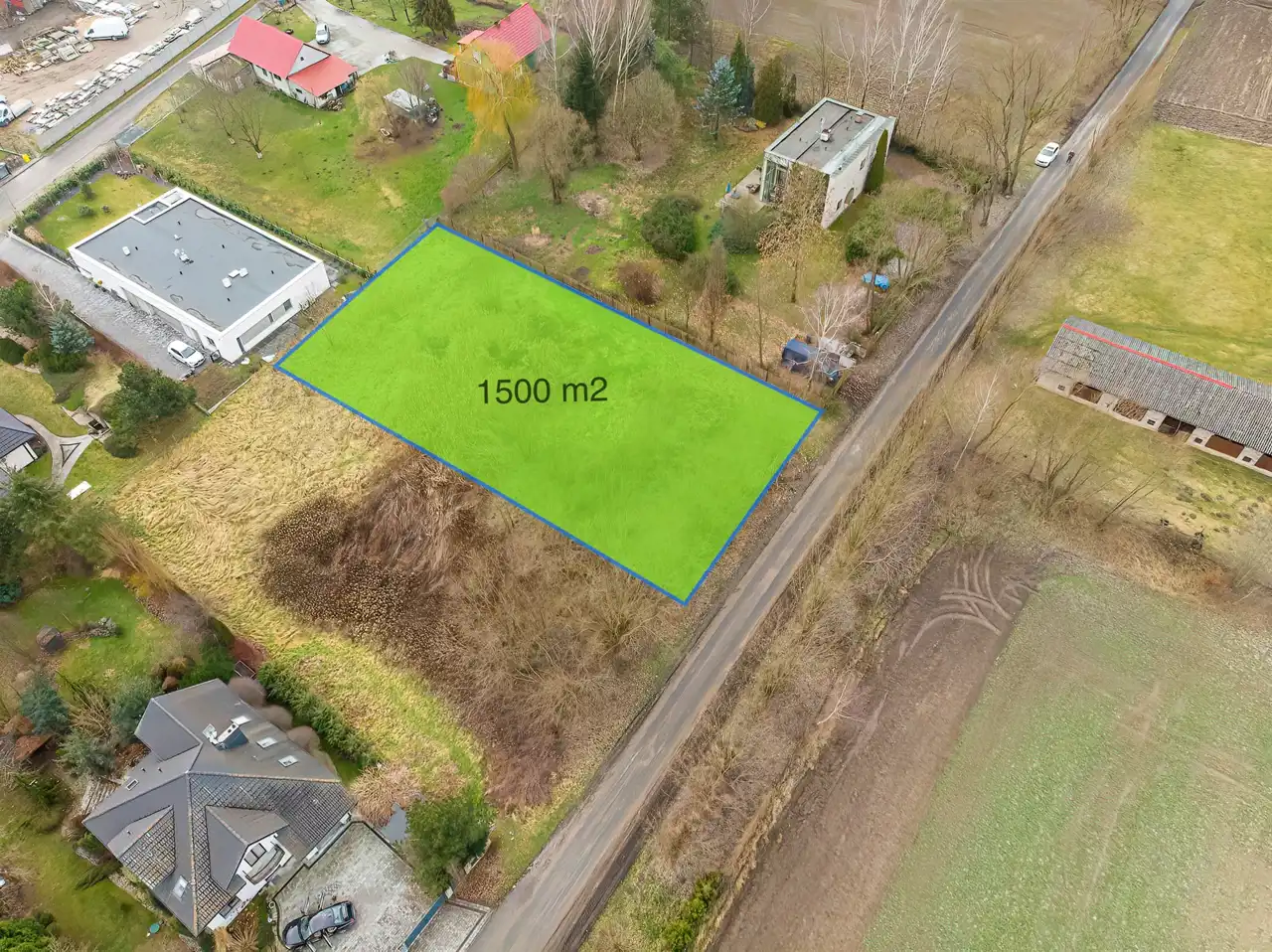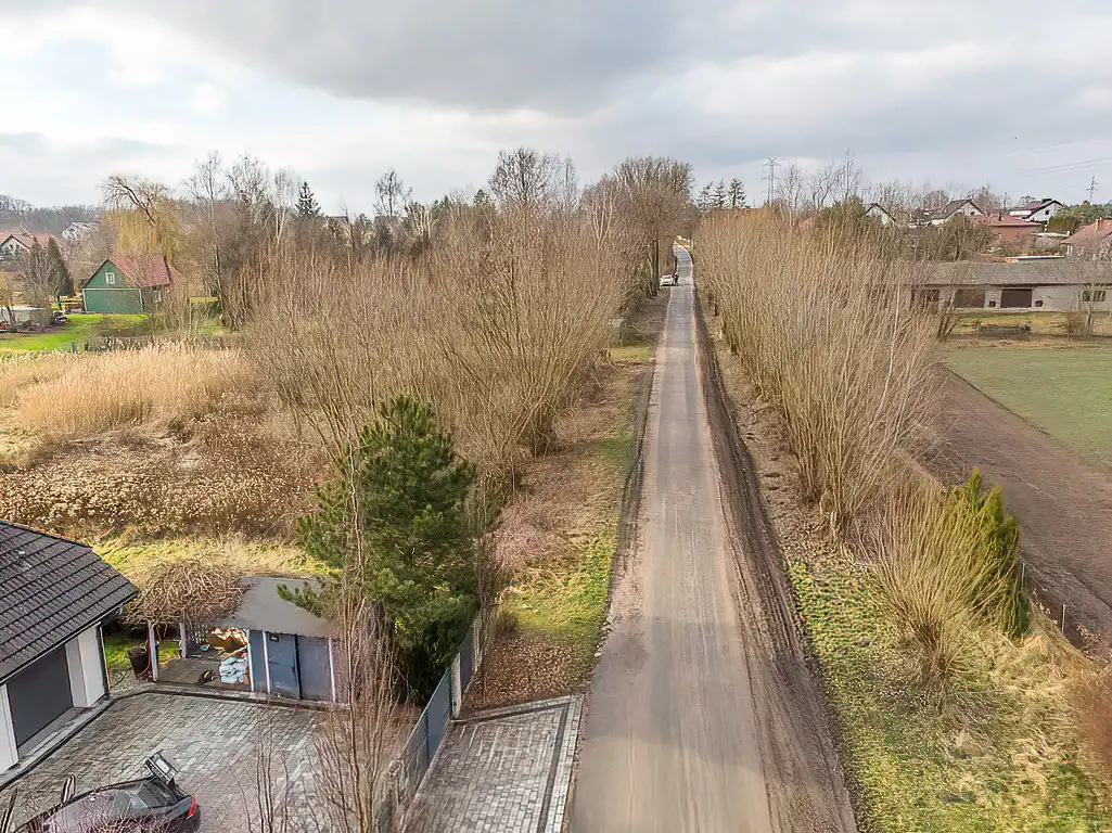 Nieruchomość położona jest na osiedlu domów jednorodzinnych we wschodniej części miejscowości przy ul. Łąkowej. Numer działki 44/7. Wymiary działki to około 28x54m. Krótszym bokiem przylega do drogi asfaltowej. Media znajdują się w drodze dojazdowej. Wydane zostały warunki przyłączenia z Tauronu. Woda i gaz do podciągnięcia.
