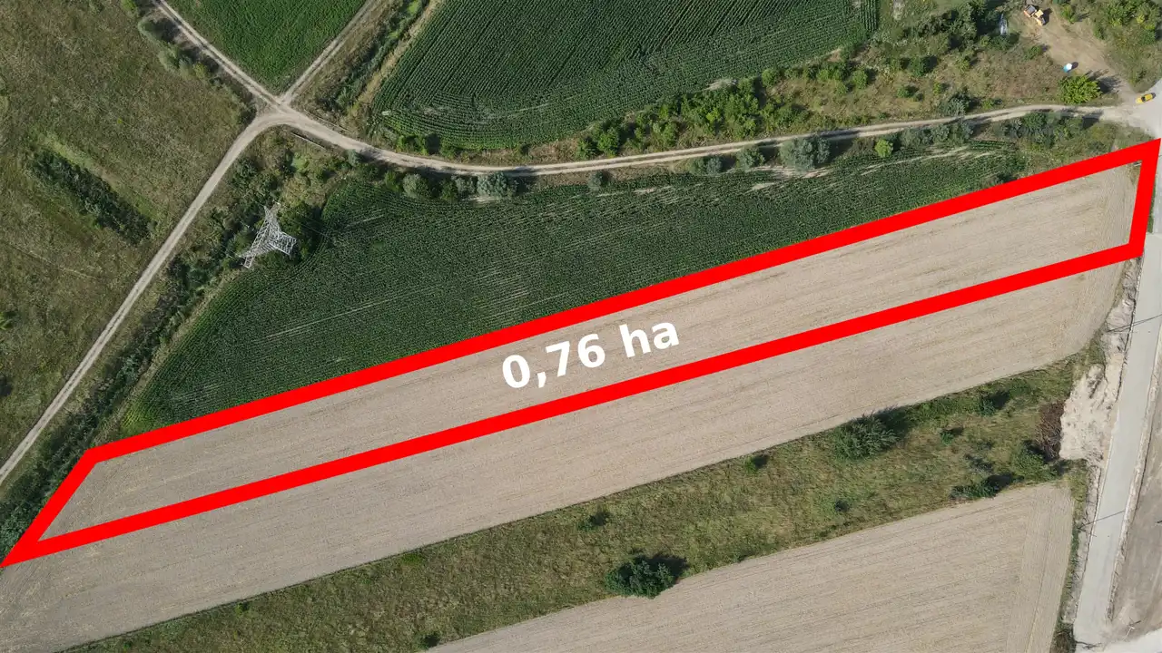 Działka o numerze geodezyjnym 418/3, o regularnym kształcie, położona w Russocicach o powierzchni 7639 m2, o wymiarach: szerokość działki 25 metrów, długość 300 metrów.