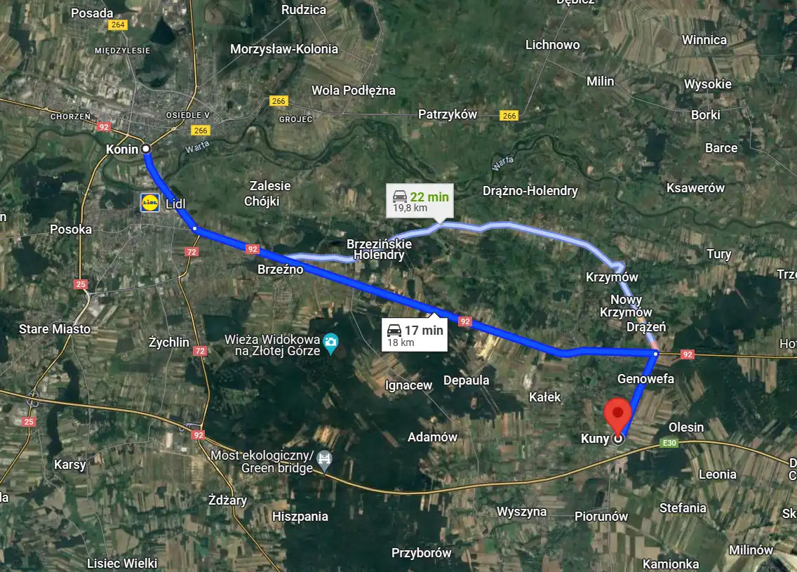 Działka znajduje się w znakomitej lokalizacji, zaledwie 15-20 minut drogi od większych miast, takich jak Konin, Turek czy Koło, co czyni ją doskonałym miejscem zarówno na inwestycję, jak i na stworzenie przestrzeni do życia w spokojnej, wiejskiej okolicy.