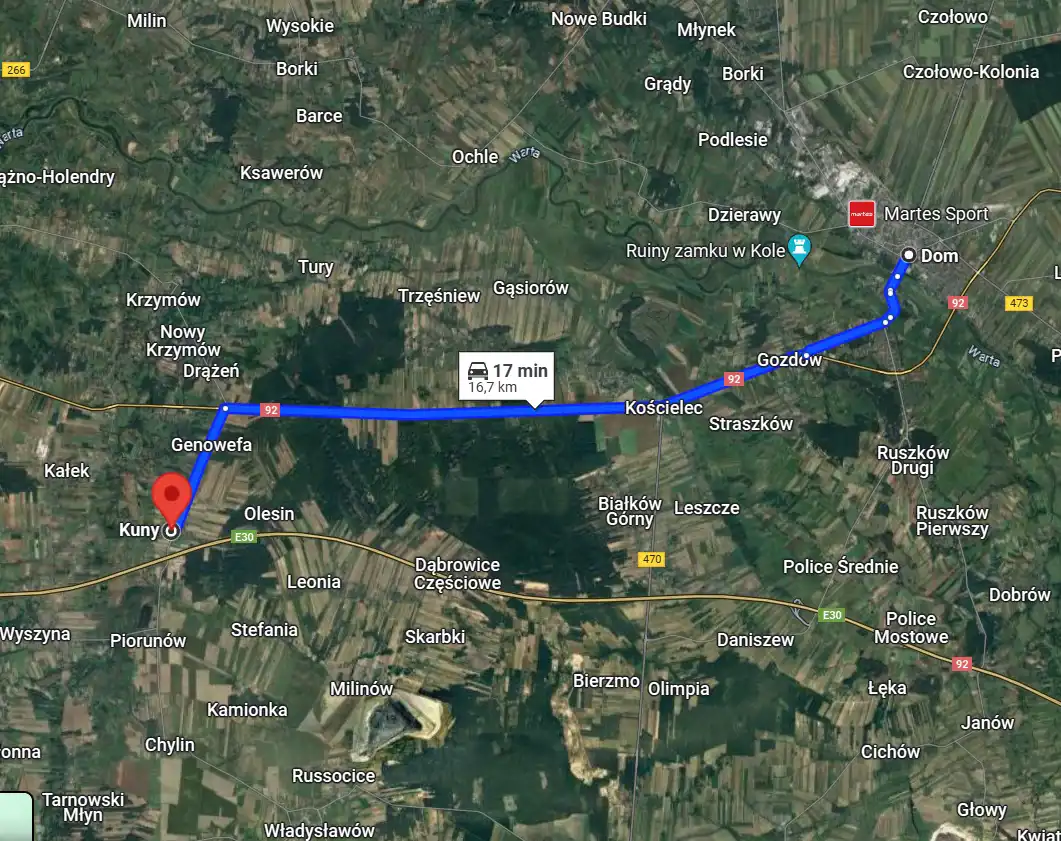 Na sprzedaż oferujemy działkę rolną o powierzchni 66 arów, położoną w miejscowości Kuny, w powiecie tureckim.