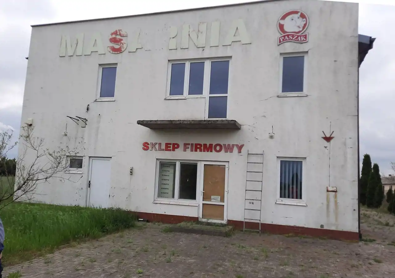 Do sprzedaży budynek dwukondygnacyjny o powierzchni całkowitej 800m2 w Polichnie powiat turecki. Zlokalizowany na działce o powierzchni 1,9142ha. Nieruchomość jest przystosowana do prowadzenia działalności jako masarnia z całą infrastrukturą bez wyposażenia.