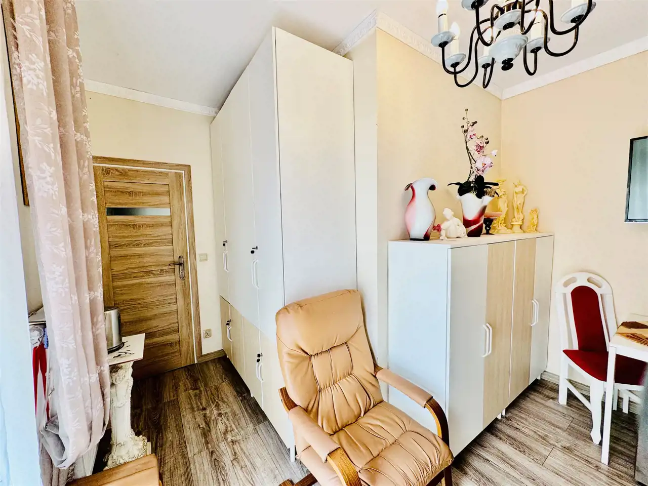 Przestronny salon, skąpany w naturalnym świetle, staje się sercem domu, idealnym do wypoczynku i spotkań z bliskimi. Funkcjonalna kuchnia, wzbogacona o dodatkowe pomieszczenie na przechowywanie, oferuje wszystko, czego potrzebuje domowy szef kuchni. Nowoczesna łazienka z eleganckimi sanitariatami podkreśla wysoki standard mieszkania.