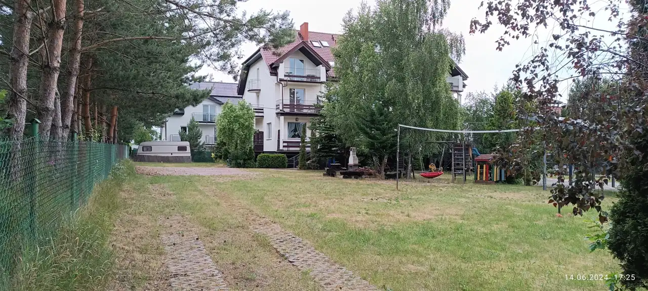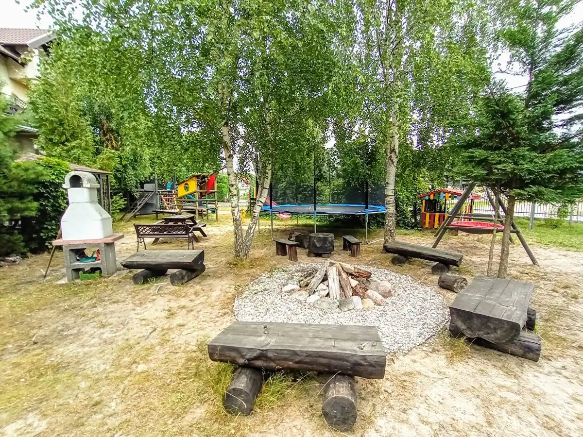 - Udogodnienia na terenie obiektu: Na posesji znajduje się miejsce parkingowe dla każdego pokoju, nieduży plac zabaw dla dzieci oraz miejsce na grilla.