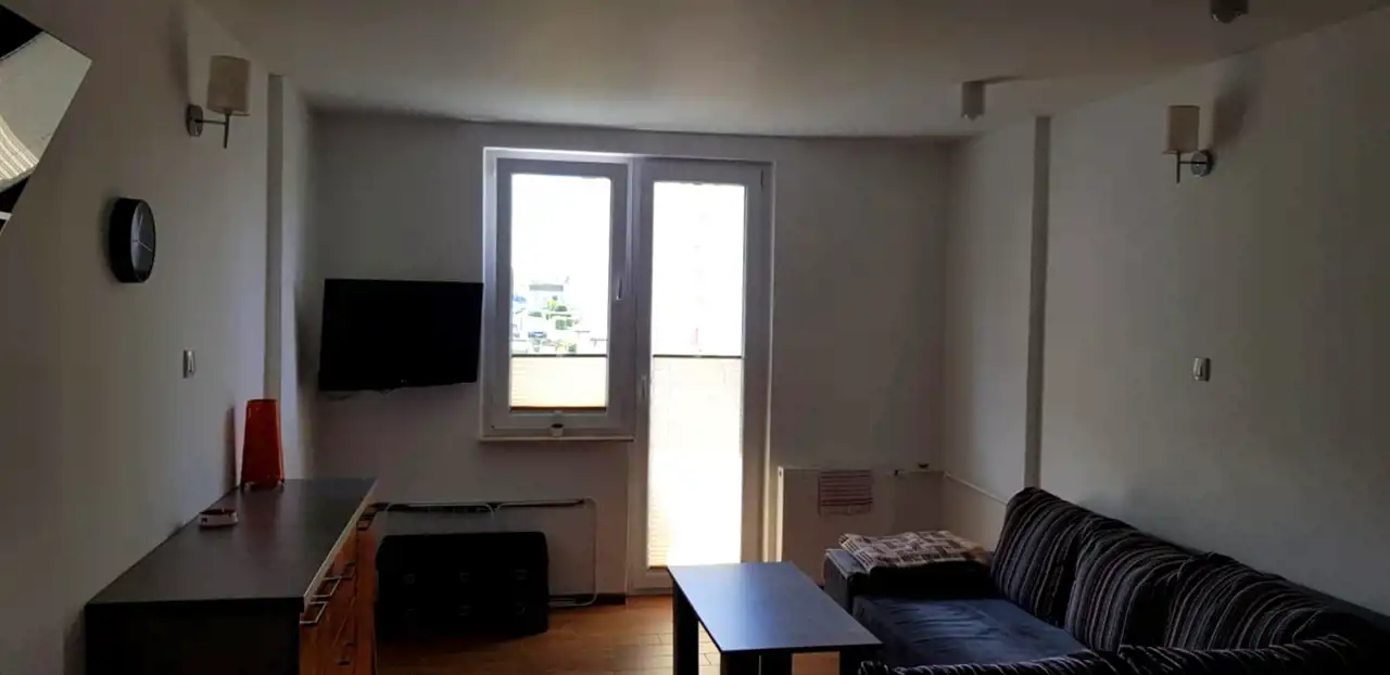 Salon z balkonem – z wyjściem na balkon z widokiem na spokojną okolicę.