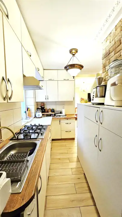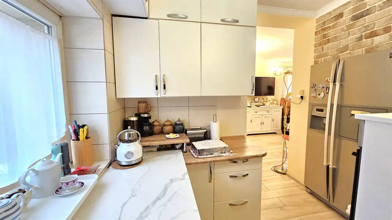 - otwartej widnej zabudowanej kuchni ze spiżarką,