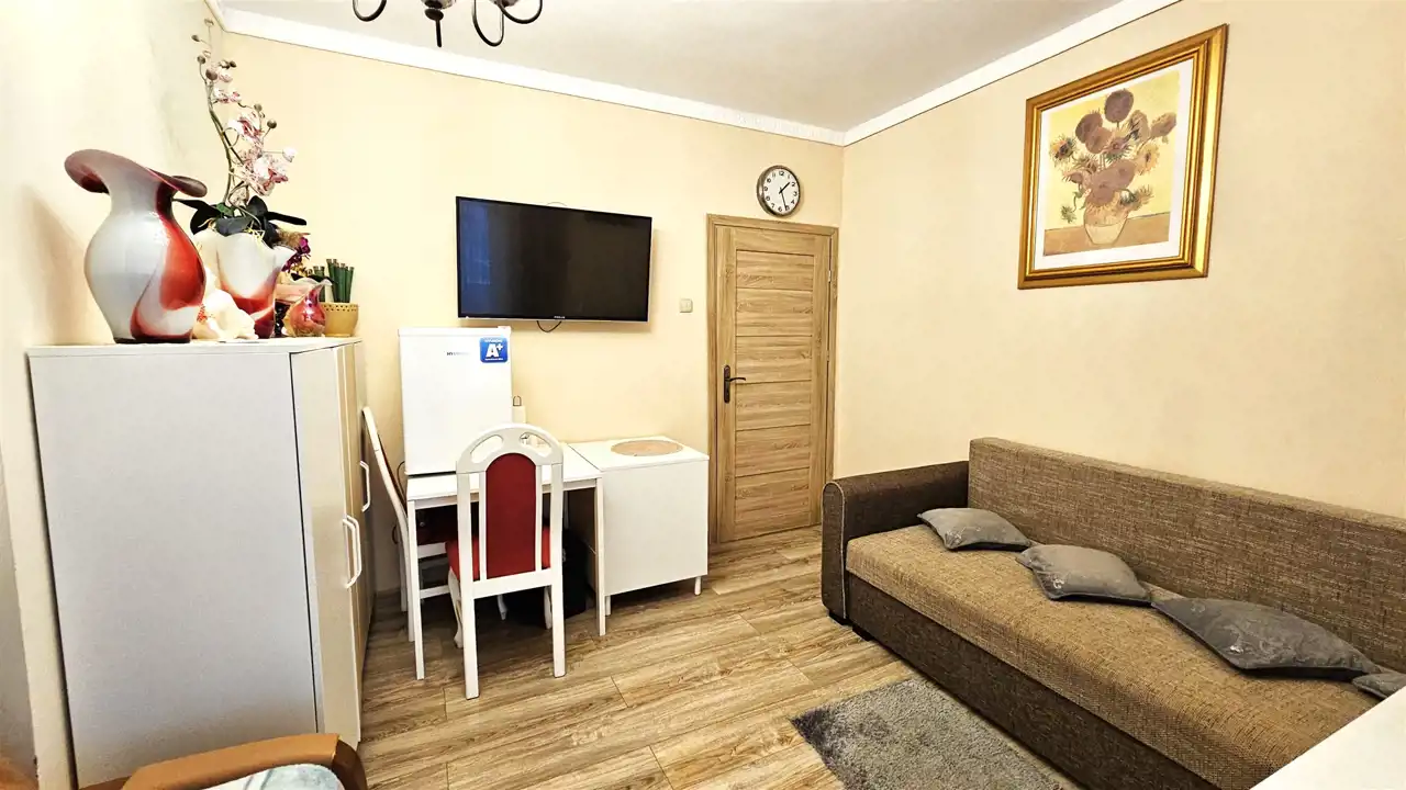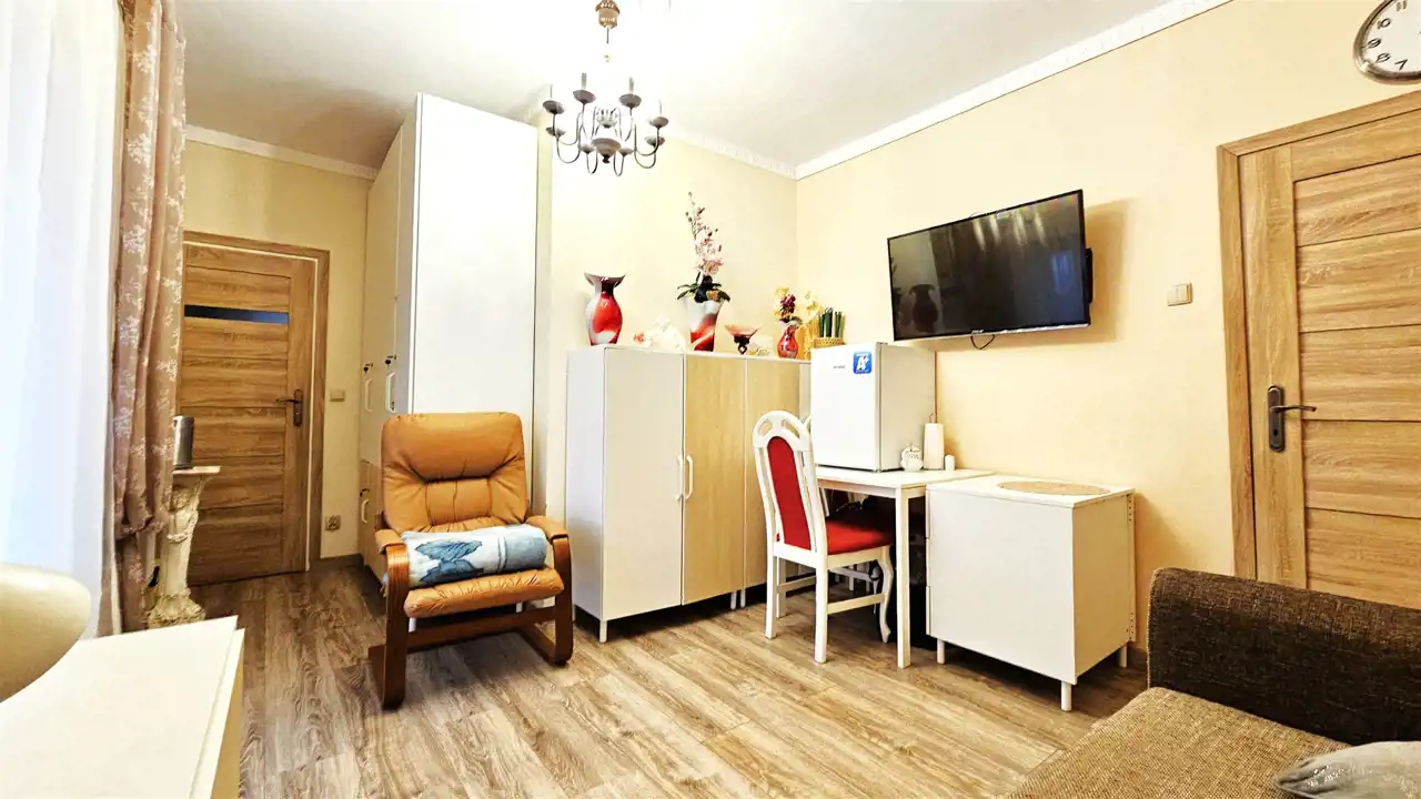 Komfortowy, nietuzinkowy apartament z garażem, w budynku trzyrodzinnym, położony 8km od Władysławowa przy ul. Polnej, zaledwie 400m od morza (15 min pieszo do plaży - do lasu 60m), znajdujący się na kameralnym osiedlu w cichym zakątku, z którego można szybko i wygodnie dostać się do centrum, o powierzchni użytkowej 64,62m2, całkowitej 99m2. Dom jest po remoncie elewacji i dociepleniu, co powoduje wysoką energooszczędność. Lokal posiada trzy wejścia. Mieszkanie zaprojektowane zostało w nietuzinkowy sposób, dbając o jego maksymalną funkcjonalność, komfort i wygodę mieszkańców, czyniąc go jednocześnie eleganckim.