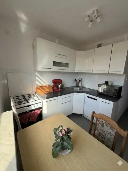 - Media Ogrzewanie: C.O. miejskie; Woda: ciepła - piecyk gazowy; Gaz: tak - miejski