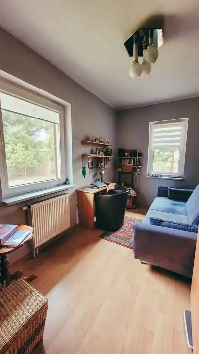 Możliwość zaadaptowania domu (przebudowy) do zamieszkania przez 2 rodziny. Zagospodarowana działka z miejscem do wypoczynku i stanowiskami na auta oraz dużym garażem. Spokojna okolica i życzliwe sąsiedztwo i sporo wolnej przestrzeni wokół domu. W najbliższej okolicy znajdują się: szkoła, przedszkole, sklepy i przystanek MPK, Biedronka i market.