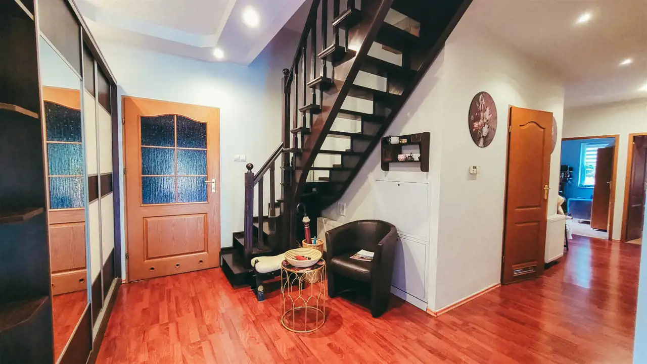 - korytarz (przedpokój) z zabudową i schodami na poddasze