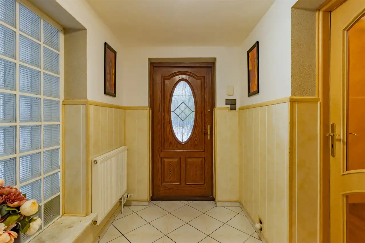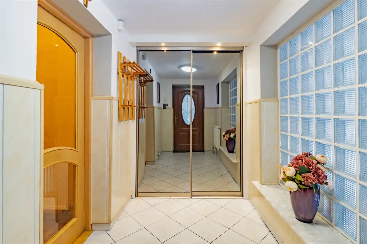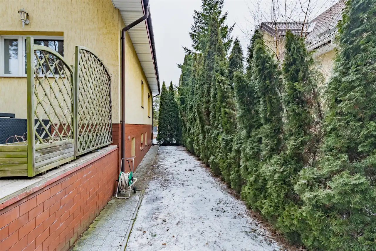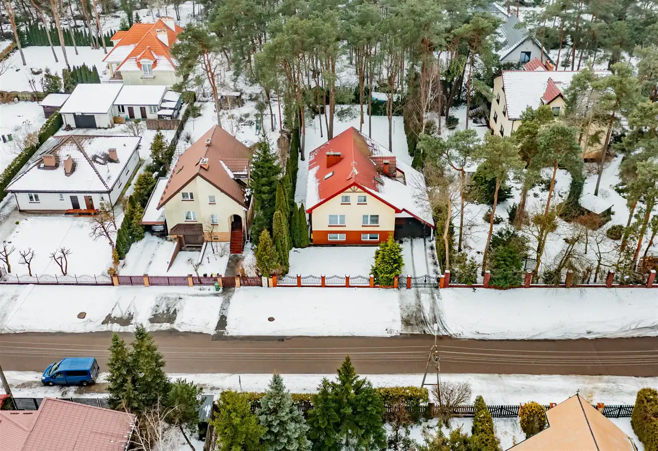 Bryła budynku zwraca uwagę proporcjami i detalem charakterystycznym dla architektury XX wieku. Klasyczna forma, solidne wykonanie i wyważona estetyka sprawiają, że nieruchomość zachowuje ponadczasowy charakter. Taras stanowi naturalne przedłużenie strefy dziennej, optycznie poszerzając bryłę budynku i tworząc miejsce sprzyjające wypoczynkowi. Balkon na wyższej kondygnacji harmonijnie dopełnia architekturę domu, oferując kameralną przestrzeń relaksu oraz przyjemny widok na otoczenie. Połączenie funkcjonalności z eleganckim wyglądem tworzy przestrzeń komfortową w codziennym użytkowaniu, a jednocześnie wyróżniającą się indywidualnym stylem. Dom został w całości podpiwniczony i mamy również do wykorzystania przestrzeń na użytkowym poddaszu, co zapewnia dużą funkcjonalność oraz czytelny podział przestrzeni na strefy: