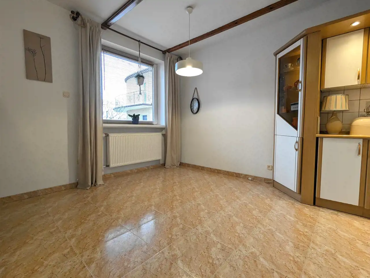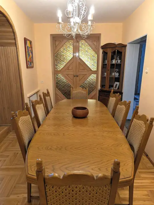 Całość wykończona i bogato wyposażona: okna PCW, nowe drzwi wejściowe Wikęd (spełniające parametry programu czyste powietrze), na podłodze parkiet jesionowy, na poddaszu deski sosnowe, schody z drewna jesionowego, na ścianach i sufitach gładź, wybrane umeblowanie i elementy wyposażenia pozostaną w cenie nieruchomości (do uzgodnienia). Dom ciepły o niskich kosztach utrzymania domu.