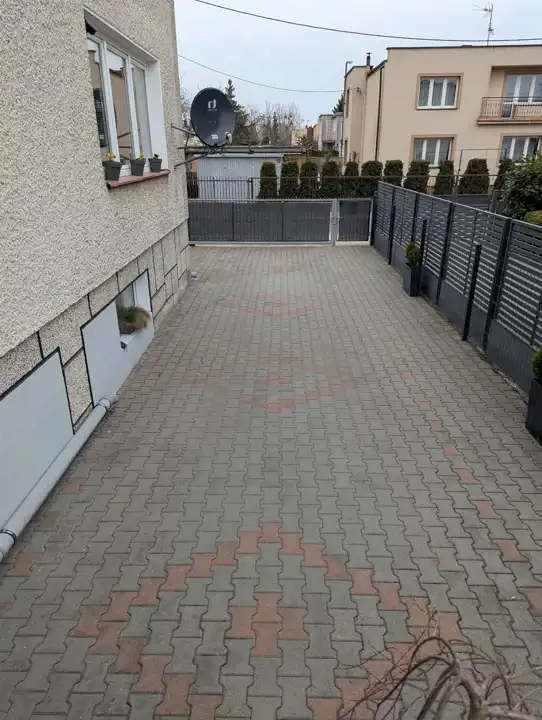 Działka 260 mkw, ogrodzona parkanem metalowym, z bramą przesuwną od ulicy, w części wyłożona kostką brukową, w części z placem zabaw i piaskownicą, z wygospodarowanym intymnym kącikiem do relaksu na świeżym powietrzu.