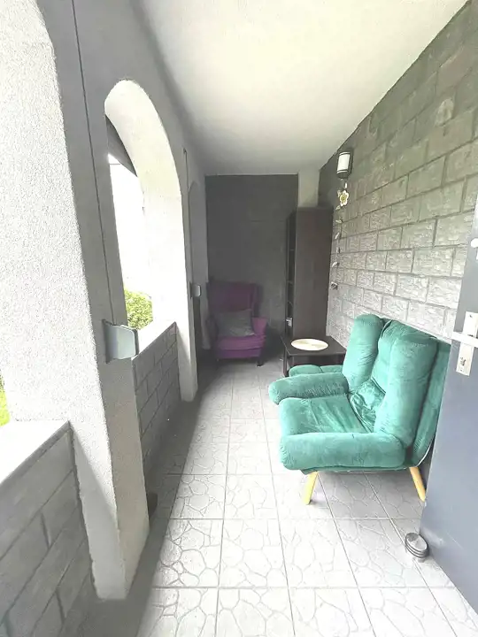 Przestronny, widny korytarz i klimatyczny ganek wypoczynkowy