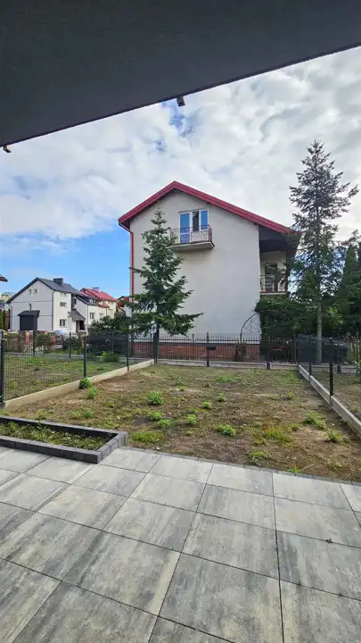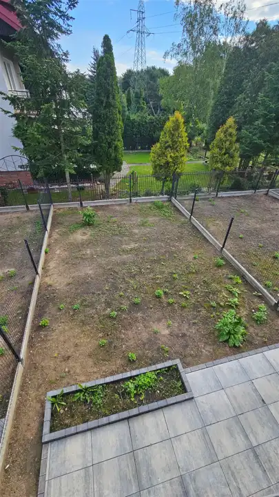 - teren całego osiedla ogrodzony: ogrodzenie frontowe betonowe z metalowymi wypełnieniami oraz siatka panelowa, w tylnej części osiedla wyjście do lasu