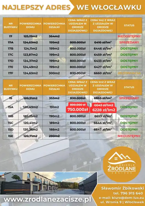 Oferta dotyczy zewnętrzengo domu o nr 15F (segment 7 budynków)