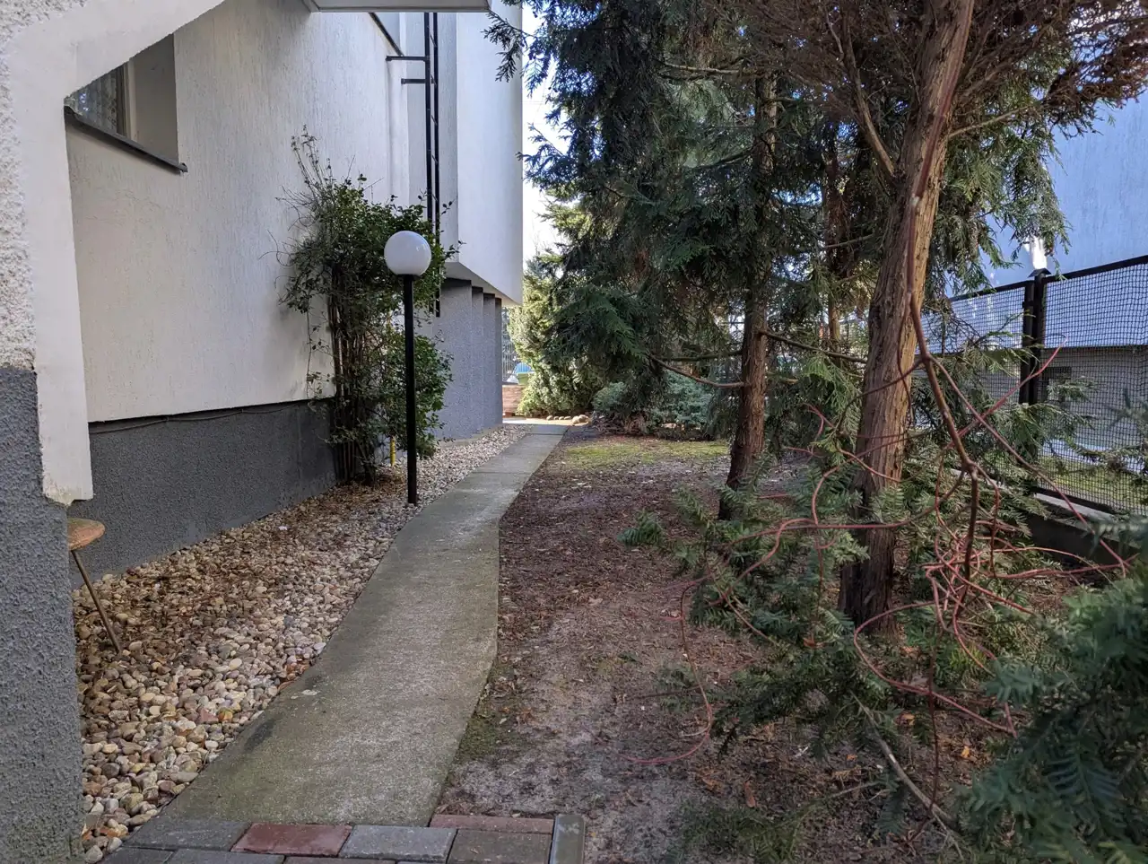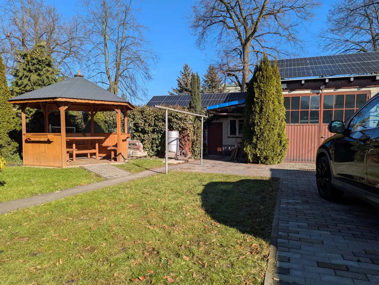 Działka starannie zagospodarowana, prócz domu jest budynek garażowo-gospodarczy o powierzchni około 50 mkw – z panelami fotowoltaicznymi użytkowanymi na starych zasadach, ładna altana drewniana, przydatny w gospodarstwie domowym trzepak, teren wokół domu, podjazd do garażu i wszystkie ścieżki wyłożone kolorową kostką brukową, na pozostałym gruncie zadbany trawnik, kwiaty, krzewy, od ulicy parkan z metalowych płaskowników, obłożona klinkierem podmurówka i słupki, dwie bramy wjazdowe, jedna automatycznie otwierana. Dojazd drogą asfaltową.