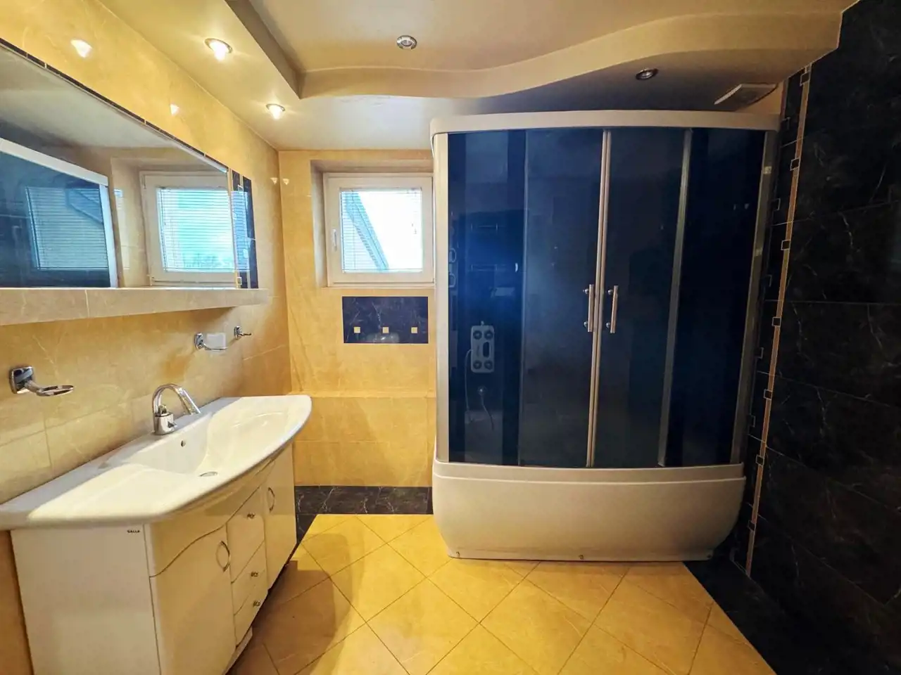 W pokojach znajdują się podłogi drewniane (parkiet), natomiast w kuchni, korytarzu oraz łazienkach zastosowano praktyczne płytki. Na piętrze znajduje się komfortowa łazienka z ogrzewaniem podłogowym oraz wanną zabudowaną z funkcją prysznica. Dużym udogodnieniem są liczne zabudowy meblowe, w tym pojemne szafy, które pozostają w cenie nieruchomości.