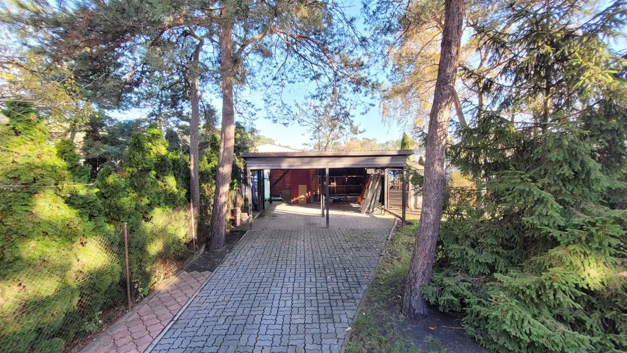 Poza budynkiem mieszkalnym na działce znajduje się wiata wolnostojąca ze stanowiskami na 2 auta oraz magazynek na narzędzia.