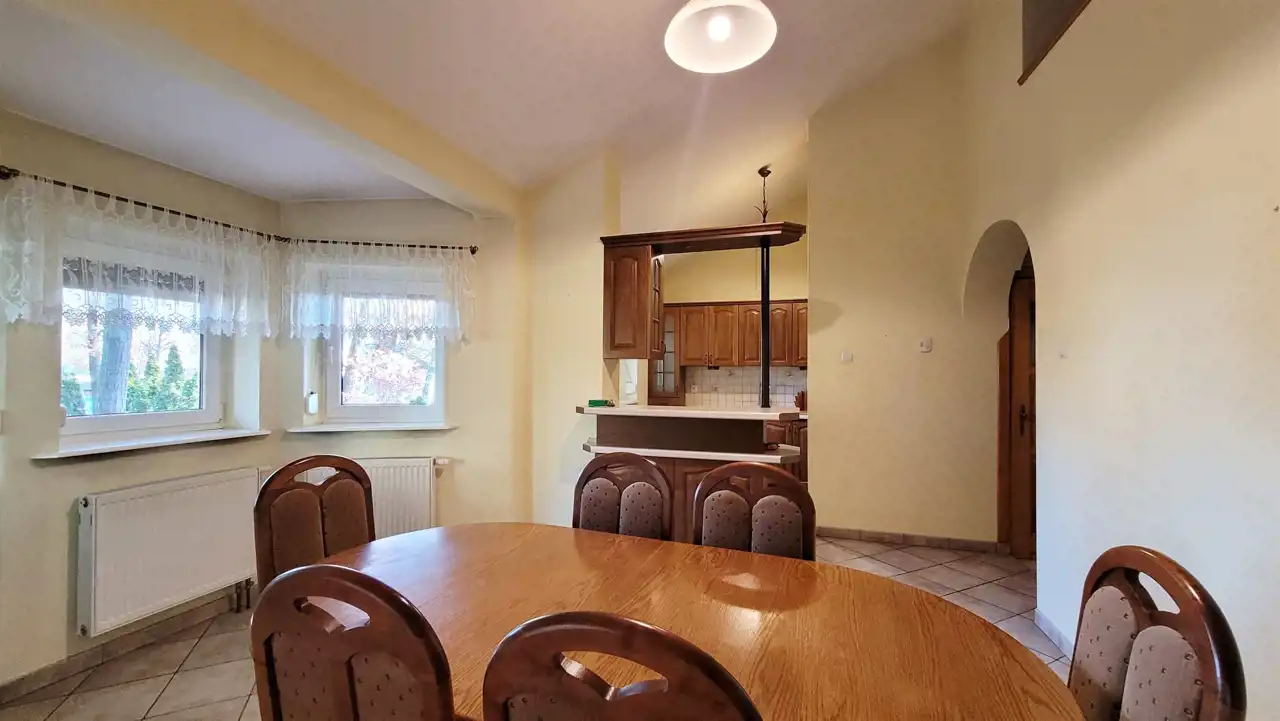 Możliwość zaadaptowania domu (przebudowy) do zamieszkania przez 2 rodziny. Zagospodarowana działka z miejscem do wypoczynku i stanowiskami na 2 samochody plus garaż w bryle budynku. Spokojna okolica i życzliwe sąsiedztwo i sporo wolnej przestrzeni wokół domu. W najbliższej okolicy znajdują się: szkoła, przedszkole, sklepy i przystanek MPK.