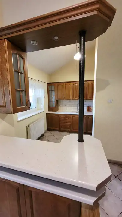 - kuchnia z zabudową z drewna z jadalnią i wyjściem na taras