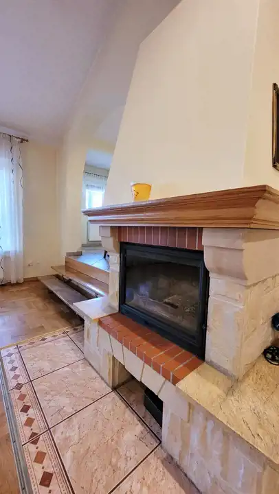 - salon z klimatycznym kominkiem
