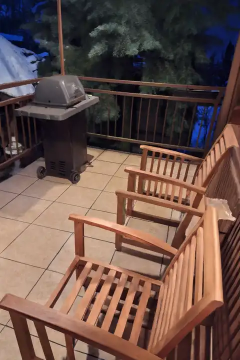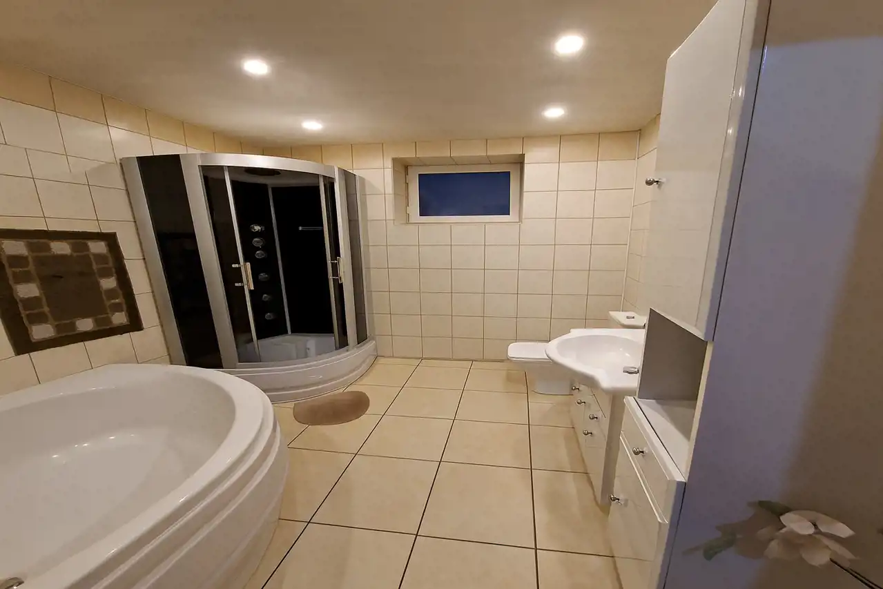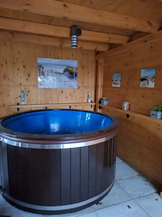 • Jacuzzi pod zadaszeniem (1000 l, ogrzewanie olejowe – nagrzewa się w 15 minut), z roletami odsłanianymi dla prywatności