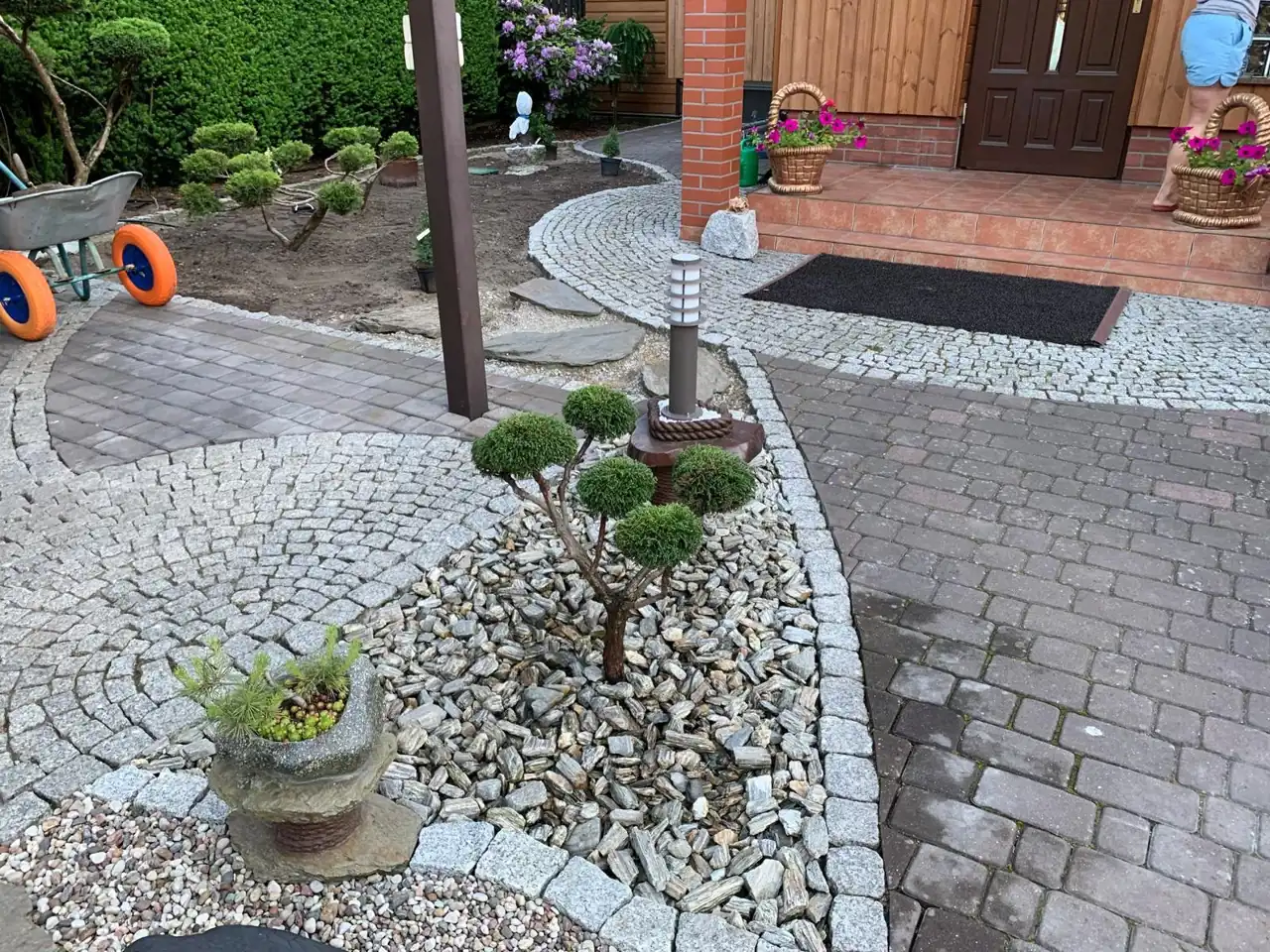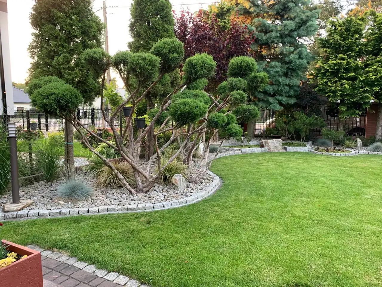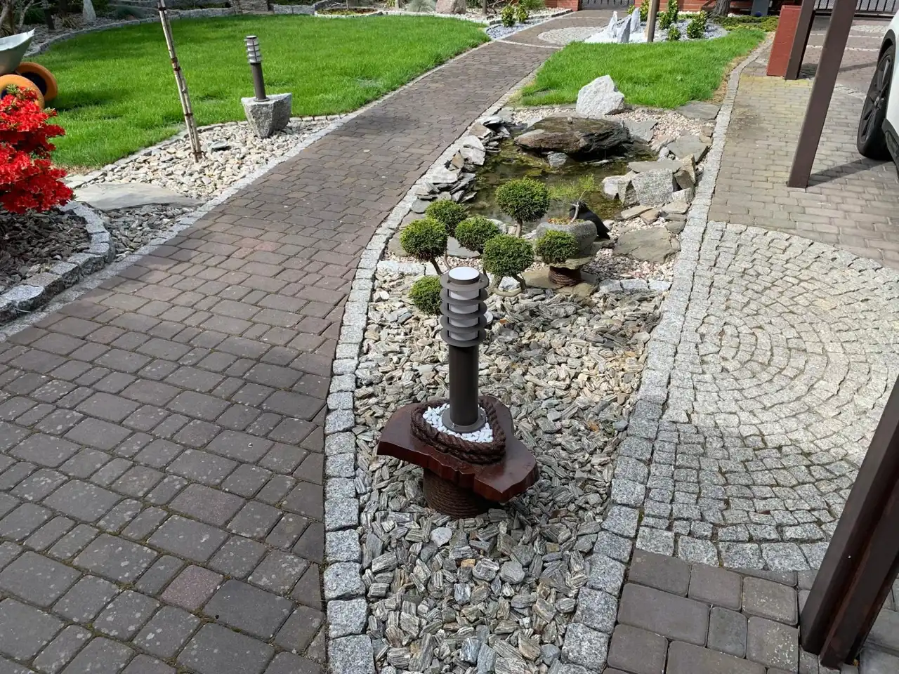 • Oczko wodne i zadbana roślinność nadająca ogrodowi wyjątkowego uroku