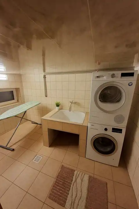 • Piwnica: czysta, zadbana, wyłożona płytkami – pralnio-suszarnia, dodatkowy pokój, łazienka oraz pomieszczenie z piecem