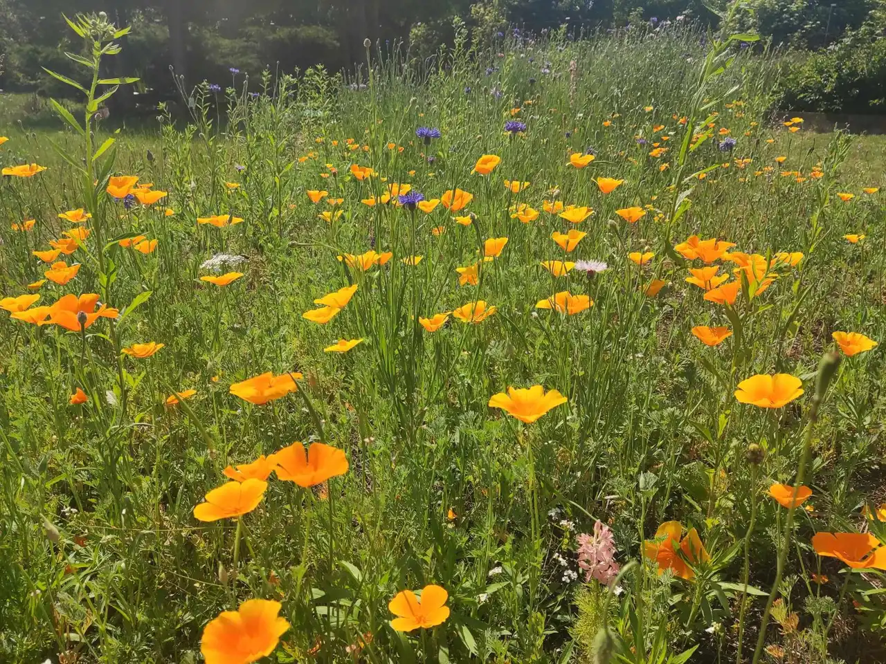e) przepiękne łąki kwietne – od kwietnia do sierpnia działka mieni się wszystkimi kolorami chabrów, maków i innych przepięknych kwiatów